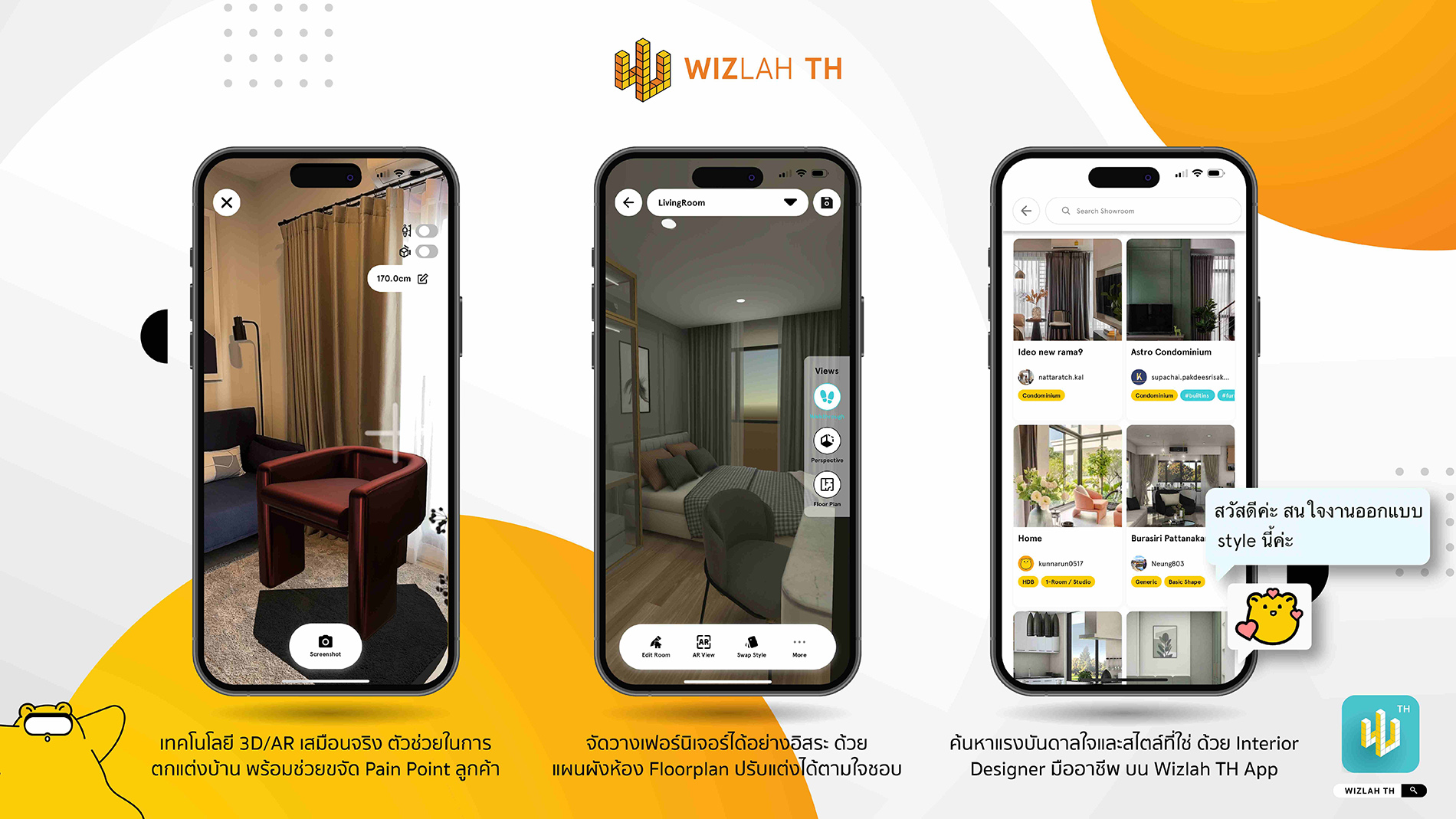 ปรากฏการณ์ใหม่ของแอป Wizlah TH คว้ารางวัล Asian Technology Excellence Awards 2024 สาขา Smart Technology–Interior Design Solutions จาก Asian Business Review นิตยสารชั้นนำด้านนวัตกรรมเทคโนโลยีดิจิทัลของสิงคโปร์ ซึ่งสะท้อนให้เห็นถึงความมุ่งมั่นในการสร้างสรรค์นวัตกรรมดิจิทัล ที่นอกจากจะช่วยยกระดับธุรกิจด้านออกแบบและตกแต่งบ้านแล้ว ยังสร้างความพึงพอใจให้ผู้ใช้งาน นับเป็นการช่วยยกระดับอุตสาหกรรมเฟอร์นิเจอร์และของตกแต่งบ้านทั้งระบบของไทยให้เติบโตอย่างยั่งยืน