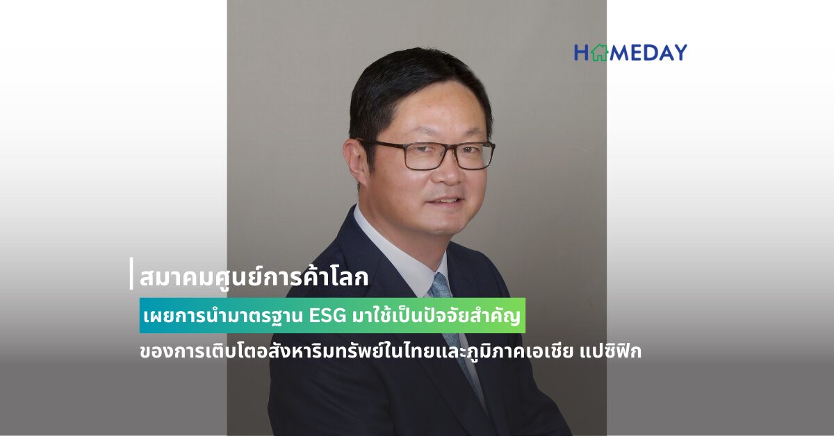 สมาคมศูนย์การค้าโลก หรือดับบลิวทีซีเอ ( World Trade Centers Association® (WTCA®)) ซึ่งเป็นสมาคมการค้าระหว่างประเทศที่เป็นเครือข่ายของศูนย์การค้าโลก หรือ เวิลด์ เทรด เซ็นเตอร์ (World Trade Center® (WTC®))มากกว่า 300 แห่งในเกือบ 100 ประเทศทั่วโลก กล่าวถึงการนำมาตรฐานด้านสิ่งแวดล้อม สังคม และธรรมาภิบาล หรืออีเอสจี (ESG) มาใช้โดยผู้พัฒนาอสังหาริมทรัพย์ของไทยว่า มีความสำคัญอย่างยิ่งต่อการขับเคลื่อนนวัตกรรมและการเติบโตระลอกต่อไปในอุตสาหกรรมอสังหาริมทรัพย์ ซึ่งมีส่วนสนับสนุนผลิตภัณฑ์มวลรวมภายในประเทศหรือจีดีพี (GDP) ของไทยประมาณร้อยละ 10