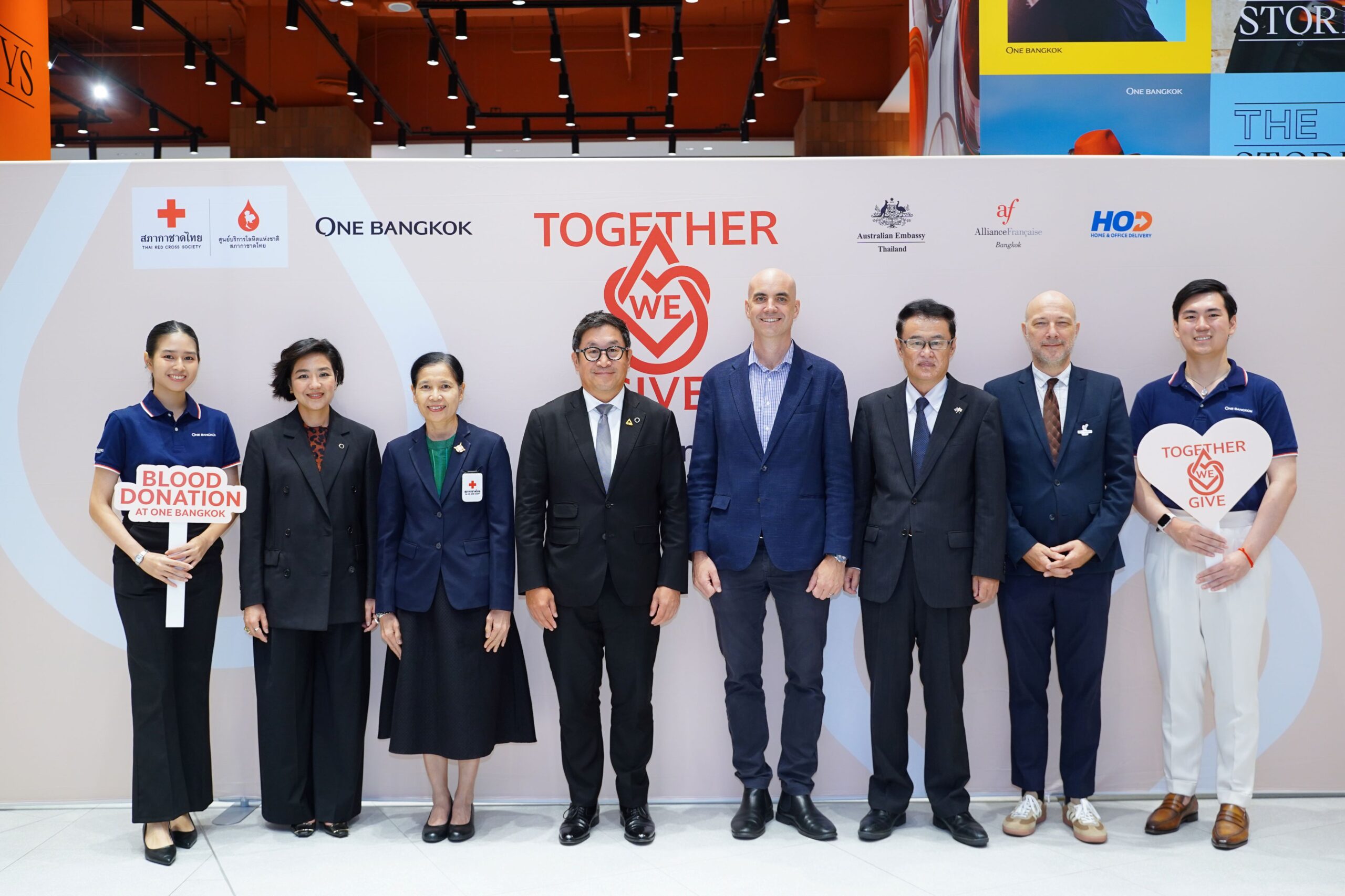 วัน แบงค็อก โครงการอสังหาริมทรัพย์ขนาดใหญ่ที่ครบครันใจกลางกรุงเทพฯ นำโดย นายวรวรรต ศรีสอ้าน (ที่ 4 จากซ้าย) รองประธานเจ้าหน้าที่บริหารอาวุโส โครงการ วัน แบงค็อก และ นางสาวจรินทร์ทิพย์ ชูหมื่นไวย (ที่ 2 จากซ้าย) ผู้อำนวยการอาวุโสฝ่ายกลยุทธ์การสร้างแบรนด์ และ ฝ่ายศิลปะและวัฒนธรรม โครงการ วัน แบงค็อก ร่วมขับเคลื่อนการสร้างสรรค์คุณค่าแก่สังคม ด้วยการผนึกกำลังกับ ศูนย์บริการโลหิตแห่งชาติ สภากาชาดไทย นำโดย นางสินีนาฏ อุทา (ที่ 3 จากซ้าย) ผู้ช่วยผู้อำนวยการด้านการบริการโลหิต ศูนย์บริการโลหิตแห่งชาติ สภากาชาดไทย พร้อมพันธมิตรจากสถานทูต ได้แก่ มร.จอห์น ฟรานซิส (ที่ 4 จากขวา) ที่ปรึกษาฝ่ายพัฒนา สถานเอกอัครราชทูตออสเตรเลียประจำประเทศไทย, นายทัตสึชิ นิชิโอะกะ (ที่ 3 จากขวา) รองหัวหน้าคณะผู้แทนการทูต สถานเอกอัครราชทูตญี่ปุ่นประจำประเทศไทย และ มร.ฌ็อง บูร์แด็ง (ที่ 2 จากขวา) ผู้อำนวยการสมาคมฝรั่งเศสกรุงเทพ จัดกิจกรรมบริจาคโลหิต ภายใต้ชื่อ “Together we give – Blood Donation at One Bangkok” ความร่วมมือครั้งนี้ระหว่าง วัน แบงค็อก สถานทูต และพันธมิตรโดยรอบโครงการฯ มีวัตถุประสงค์เพื่อเพิ่มปริมาณโลหิตสำรองคงคลังและช่วยเหลือผู้ป่วยที่มีความจำเป็นต้องใช้โลหิตทั่วประเทศ สะท้อนถึงความมุ่งมั่นของ วัน แบงค็อก ในการเป็น “เมืองกลางใจ (The Heart of Bangkok)” ที่เติบโตเคียงข้างชุมชนและสังคมไทยอย่างยั่งยืน กิจกรรมจัดขึ้นที่หน่วยรับบริจาคโลหิตเคลื่อนที่ โดยศูนย์บริการโลหิตแห่งชาติ สภากาชาดไทย บริเวณชั้น G โซน The Storeys Gallery วัน แบงค็อก