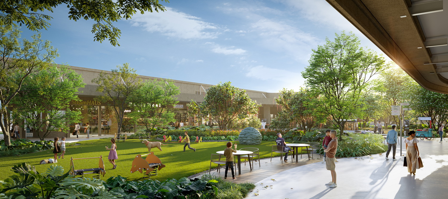 ส่วนโซนถัดเข้าไปคือ Green Space พื้นที่สีเขียวขนาดใหญ่ใจกลางโครงการ ที่ออกแบบให้เป็นสนามหญ้าโล่งกว้าง รองรับกิจกรรมกลางแจ้งและการพักผ่อนของครอบครัวได้ทุกรูปแบบ รายล้อมด้วยต้นไม้ใหญ่และสวนตกแต่งที่ให้ความร่มรื่น เชื่อมโยงกับร้านค้าโดยรอบและโซนสำหรับสัตว์เลี้ยง เป็นพื้นที่สาธารณะที่เปิดรับผู้คนทุกวัย และเป็นจุดนัดพบของชุมชนที่รักธรรมชาติได้อย่างดี