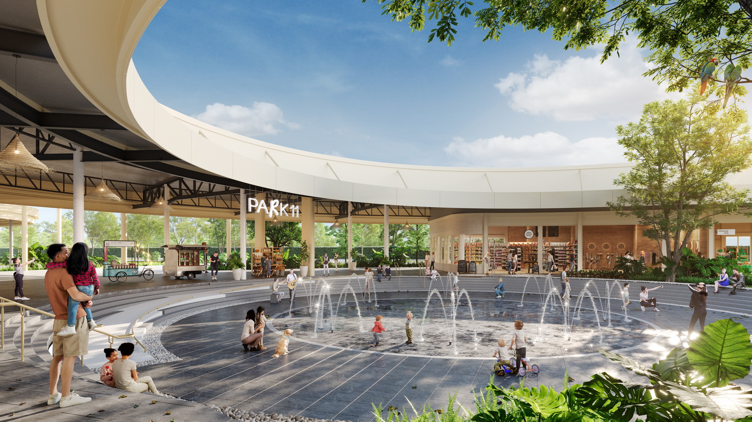 ทั้งนี้ PARK11 ได้รับการออกแบบให้เป็นพื้นที่เปิดโล่งที่เชื่อมโยงระหว่างธรรมชาติและชุมชนเมืองอย่างกลมกลืน โดดเด่นด้วยองค์ประกอบของแต่ละโซนที่ตอบโจทย์การใช้ชีวิตแบบสมดุล เริ่มจาก Fountain Square ลานน้ำพุขนาดใหญ่บริเวณด้านหน้าโครงการ ซึ่งเป็นศูนย์กลางแห่งกิจกรรมและการพักผ่อนของครอบครัว มีไฮไลต์คือระบบน้ำพุที่ผสานเสียงเพลงและแสงไฟ สร้างบรรยากาศมีชีวิตชีวา และสามารถจัดกิจกรรมขนาดย่อม เช่น Mini Concert, Weekend Market หรือกิจกรรมชุมชนอื่น ๆ ได้ในหลากหลายรูปแบบ พื้นที่โดยรอบตกแต่งด้วยที่นั่งพักผ่อนในบรรยากาศสบาย ๆ ใกล้ Sales Gallery และเชื่อมต่อกับโซน Pet Park อย่างลงตัว