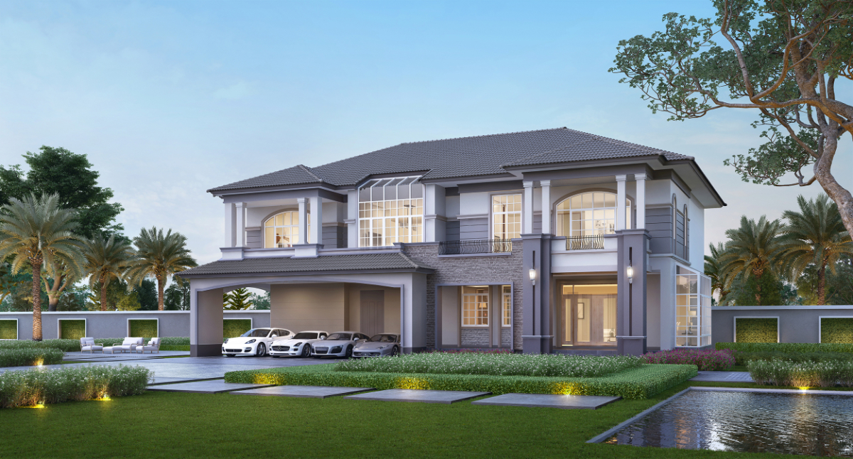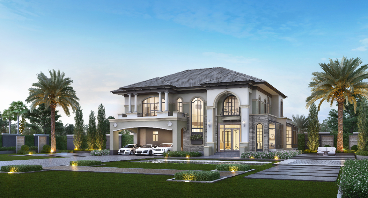 พื้นที่ใช้สอย 550 ตร.ม. 5 ห้องนอน 5 ห้องน้ำ 1 ห้องเอนกประสงค์ 1 ห้องรับประทานอาหาร 3 ที่จอดรถ