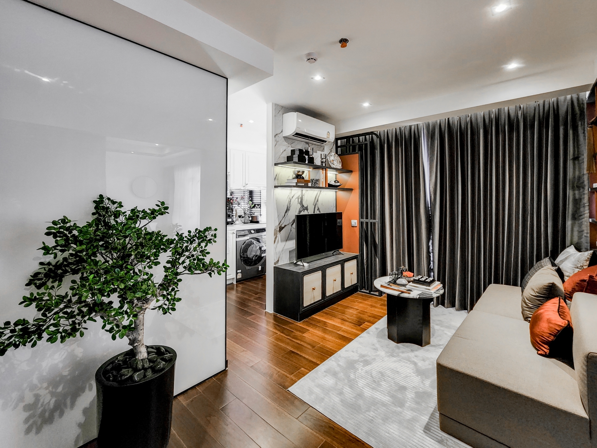 หรือจะซ่อนโต๊ะเตรียมอาหารแบบเคลื่อนที่ได้ ที่สามารถปรับเปลี่ยนการใช้งานได้หลากหลาย ไม่ว่าจะเป็นโต๊ะเตรียมวัตถุดิบสำหรับเมนูอาหารสุดพิเศษในวันหยุด หรือ