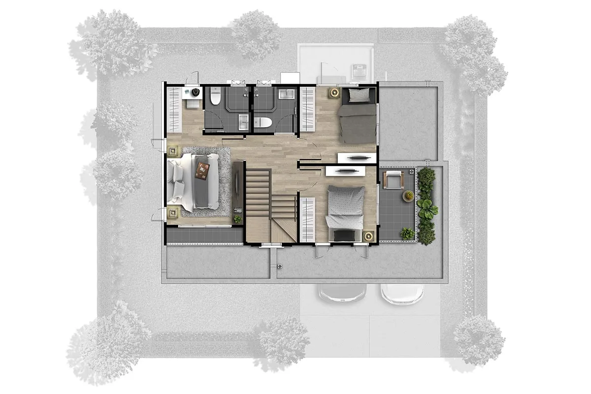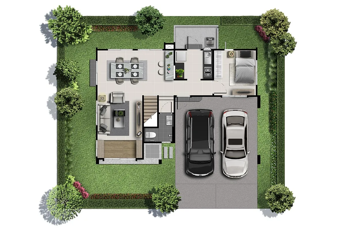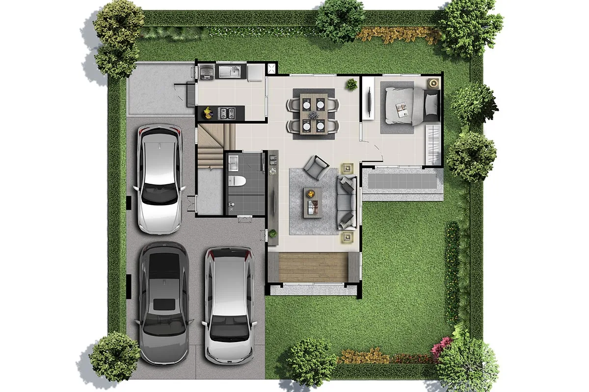 การเดินทาง ถ.พุทธสาครถ.เพชรเกษม ถ.พุทธมณฑลสาย 4 ถ.เศรษฐกิจ แบบบ้าน : ศุภสิทธิ์ ขนาด 3 ห้องนอน 2 ห้องน้ำ และที่จอดรถ 2 คัน พื้นที่ใช้สอย 129 ตร.ม. แบบบ้าน : ศุภโชติ