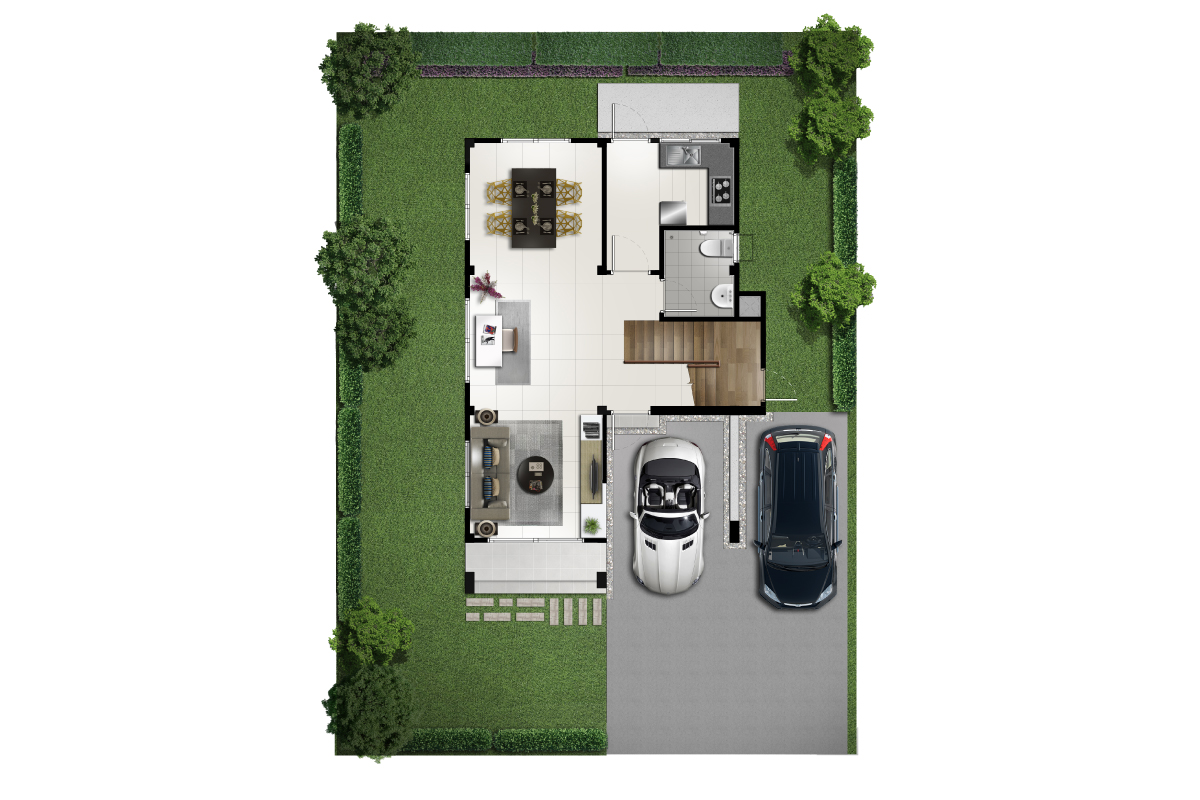 แบบบ้าน แบบบ้าน SICILY: บ้านเดี่ยว พื้นที่ใช้สอย 187 ตร.ม. 4 ห้องนอน / 4 ห้องน้ำ / 1 ห้องรับแขก / ห้องอเนกประสงค์ ห้องรับประทานอาหาร / พร้อมครัวไทย ส่วนซักล้า