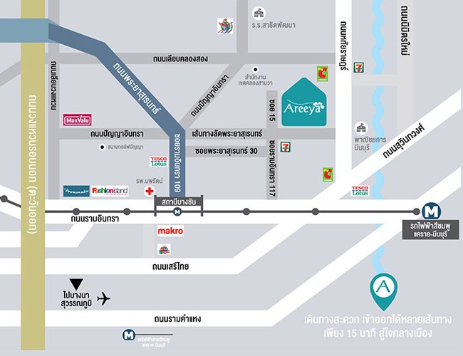 ทำเลที่ตั้ง ติดถนนร่มเกล้า แขวงมีนบุรี เขตมีนบุรี กทม. สิ่งอำนวยความสะดวกรอบโครงการ การเดินทาง ถนนกรุงเทพ-ชลบุรี (มอเตอร์เวย์)ถนนวงแหวนรอบนอกตะวันออกAirport Link สถานีลาดกระบังรถไฟฟ้าสายสีส้ม (โครงการอนาคต)