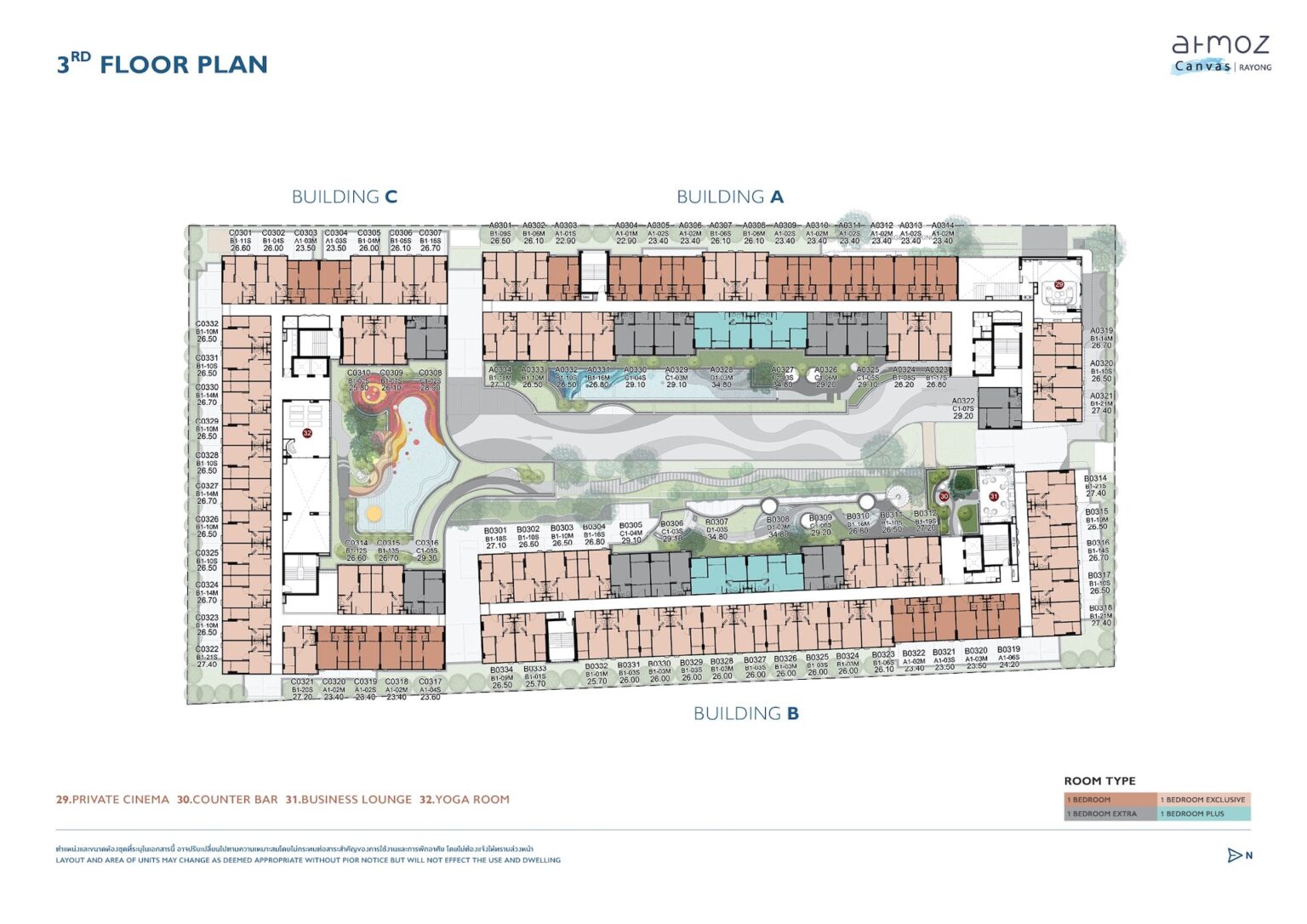 แบบแปลน ยูนิตแปลน 1 Bedroom 1A1 (41.5 ตร.ม.) Bedroom Plus PA1 (52 ตร.ม.) 2 Bedroom 2A1 (73 ตร.ม.) 2 Bedroom 2B1 (73 ตร.ม.) 2 Bedroom 2C1 (85 ตร.ม.) 3 Bedroom 3A1,3A2 (129.5 ตร.ม.)