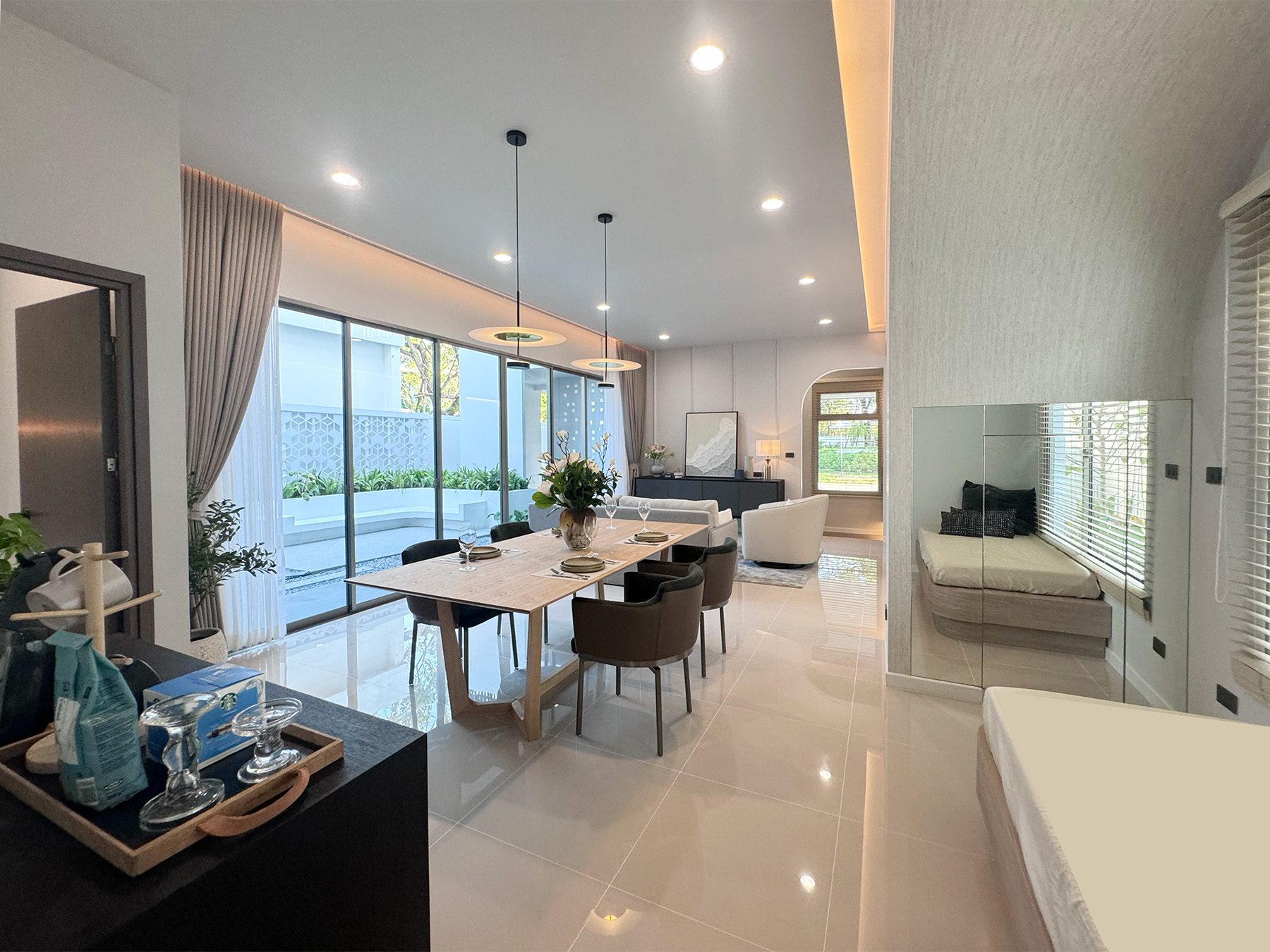 จุดเด่น รักโลกด้วยวัสดุประหยัดพลังงานให้คุณได้ใกล้ชิดกับธรรมชาติมากขึ้น อุ่นใจในระบบรักษาความปลอดภัย แบบบ้าน : ศุภทิวา ศุภทิวา(ห้องริม) ทาวน์โฮม 2 ชั้น พื้นที่ใช้สอย 125 ตร.ม. 3 ห้องนอน 2 ห้องน้ำ พร้อมที่จอดรถ 2คัน
