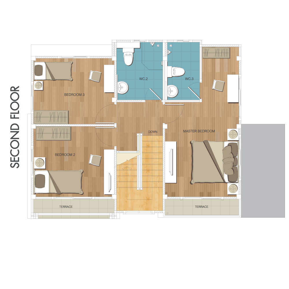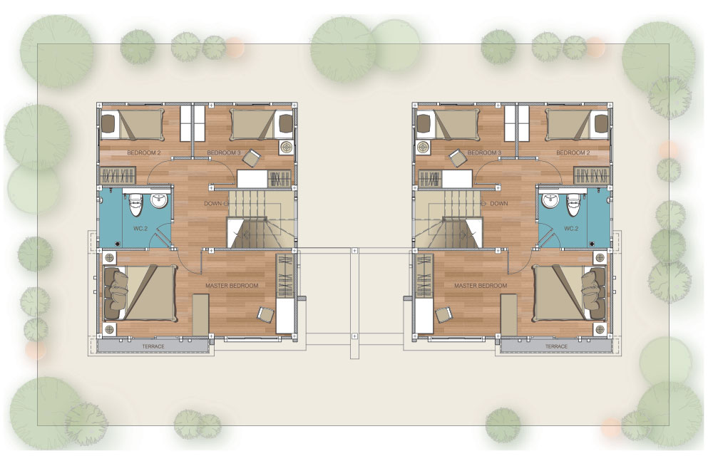 แบบบ้าน : T-Space พื้นที่ใช้สอย 140 ตร.ม. 4 ห้องนอน 3 ห้องน้ำ 2 ที่จอดรถ แบบบ้าน : T-Smart+ พื้นที่ใช้สอย 113 ตร.ม. 3 ห้องนอน 2 ห้องน้ำ 2 ที่จอดรถ ภาพโครงการ