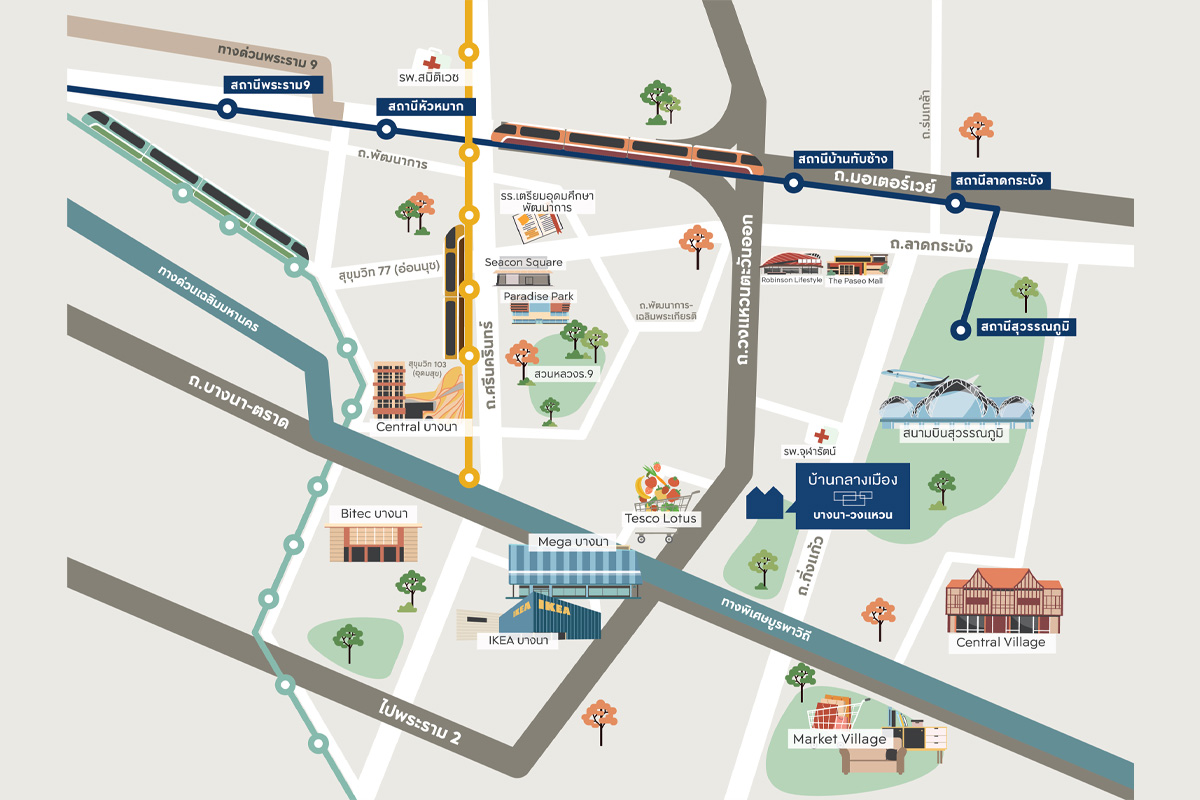 ทำเลที่ตั้ง แขวงบางบำหรุ เขตบางพลัด กรุงเทพมหานคร 10700 สิ่งอำนวยความสะดวกรอบโครงการ ภาพโครงการ แบบบ้าน การเดินทาง ถนน บรมราชชนนี 500 ม.คู่ขนานลอยฟ้า บรมราชชนนี 500 ม.ถนน สิรินธร 1.4 กม.รถไฟฟ้าสายสีน้ำเงินสถานีบางยี่ขัน 2.4 กม.รถไฟฟ้าสายสีแดงสถานีบางบำหรุ 3.9 กม.ถน