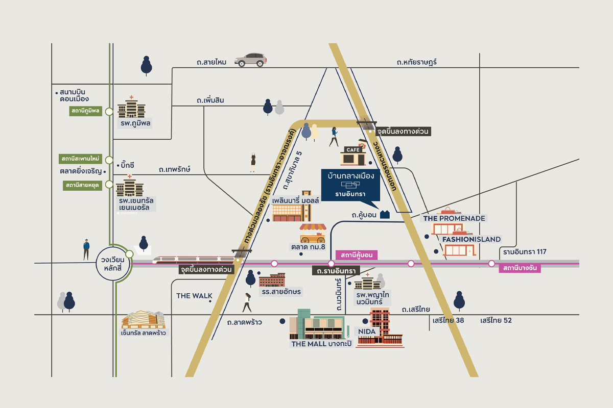 ห้างสรรพสินค้าชั้นนำCentral Future Park รังสิตRobinson Lifestyle ศรีสมานIMPACT เมืองทองธานีCentral แจ้งวัฒนะตลาดสี่มุมเมือง โรงพยาบาลรพ.ทหารอากาศ (สีกัน)รพ.บี.แคร์ เมดิคอลเซ็นเตอร์รพ.แพทย์รังสิตรพ.จุฬาภรณ์