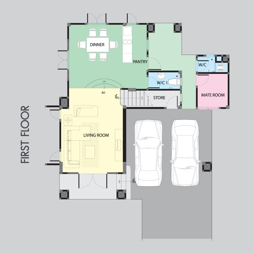 พื้นที่ใช้สอย 140 ตร.ม. 3 ห้องนอน 2 ห้องน้ำ 1 ห้องนั่งเล่น ห้องครัวแยกเป็นสัดส่วน ที่จอดรถ 1 คัน