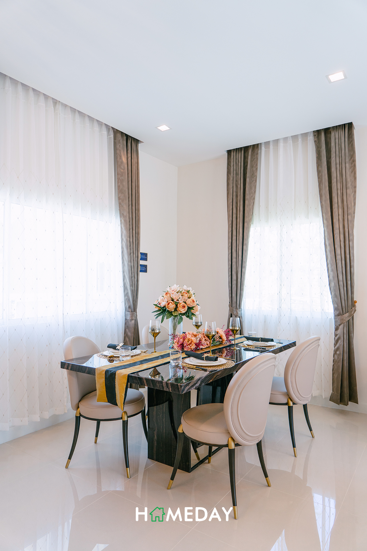 ถัดเข้ามาที่ Dining Area กันบ้างค่ะ พื้นที่ส่วนนี้สามารถวางชุดโต๊ะเก้าอี้นั่งรับประทานอาหารได้ 4-6 ที่นั่ง มุมนี้ได้วิวสวนด้านนอกตัวบ้าน 2 ฝั่งจากทางหน้าต่างค่ะ