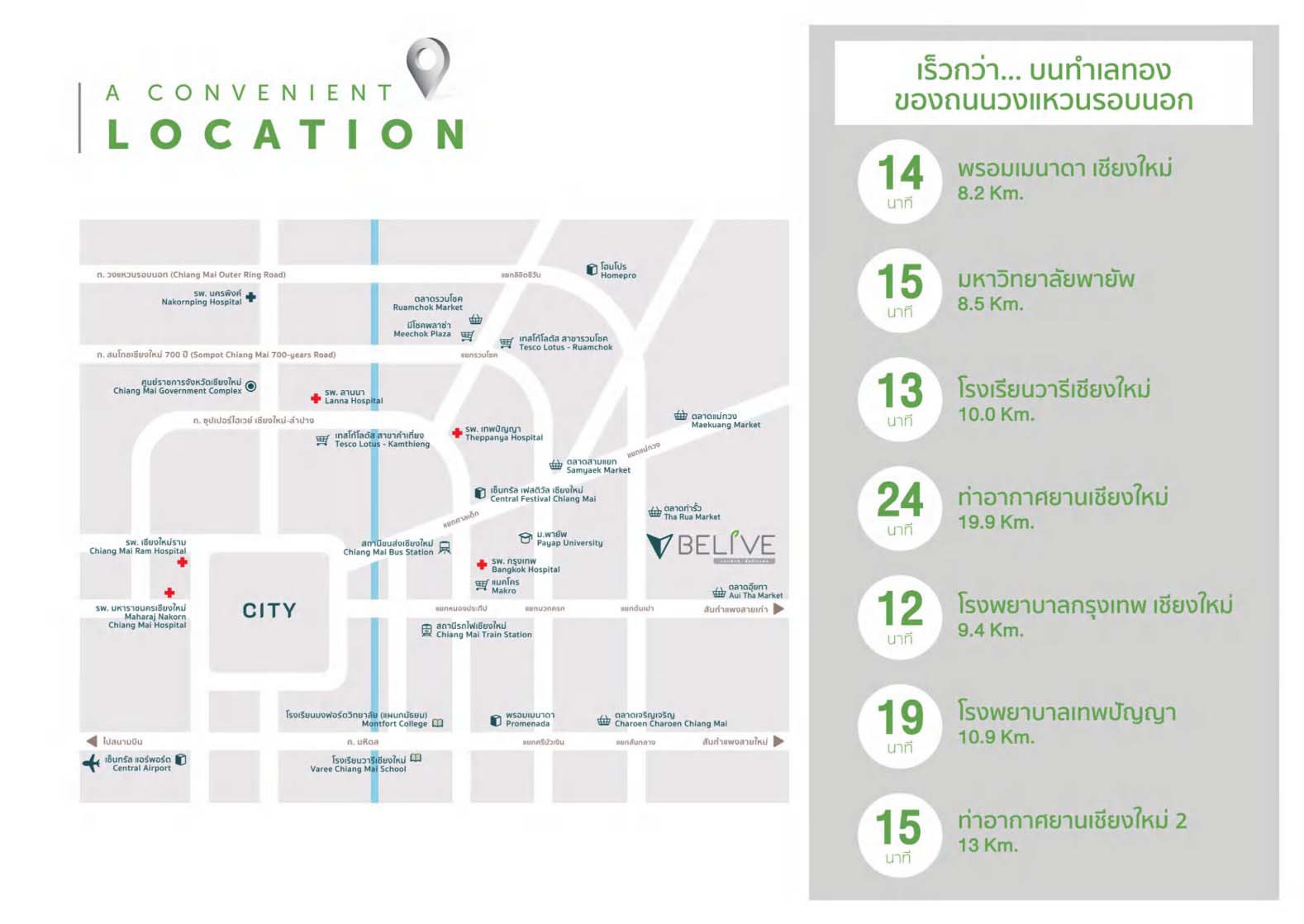 สถานศึกษารร.เตรียมอุดมศึกษาน้อมเกล้า 4.8 กม.สถาบันบัณฑิตพัฒนบริหารศาสตร์ (นิด้า) 6.9 กม.รร.เลิศหล้า 9 กม.รร.นานาชาติร่วมฤดี 11 กม. ห้างสรรพสินค้าเดอะพรอมานาด 3 กม.สนามกอล์ฟนวธานี 5.3 กม.สนามกอล์ฟปัญญาอินทรา 8.9 กม.เซ็นทรัล เฟสฯ อีสต์วิลล์ 13 กม.เดอะ คริสตัล บนถนนเอกมัย-รามอินทรา 1