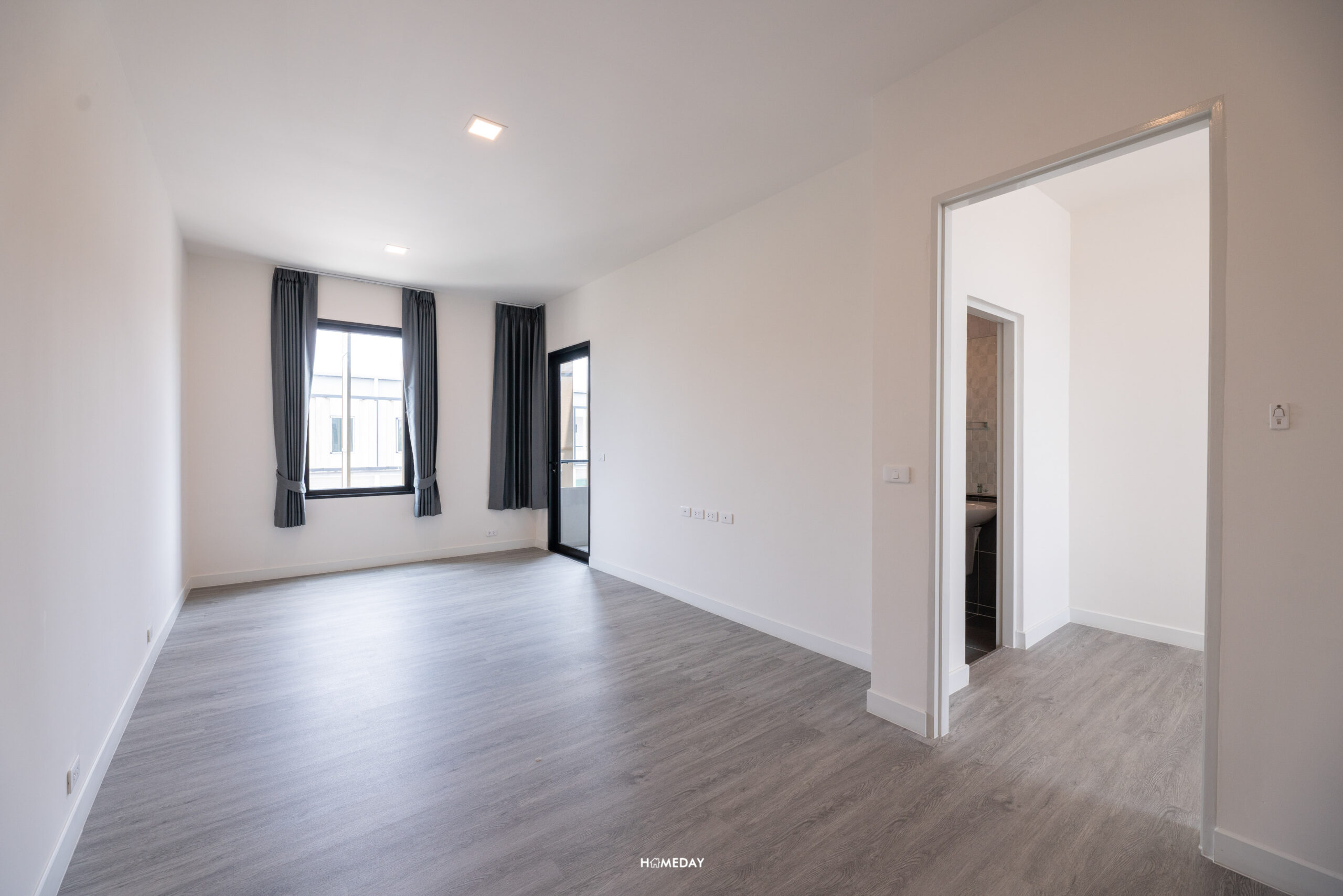 ชั้น 3 ได้พื้น SPC มาเหมือนกันกับชั้น 2 ครับ ภายในห้องอเนกประสงค์ชั้น 3 ซึ่งจะอยู่ด้านหลังตามแปลนบ้าน มีหน้าต่างบานเลื่อนให้ 1 บาน รับแสงธรรมชาติด้านนอก ส่องสว่างให้พื้นที่โปร่งโล่งได้เป็นอย่างดี จะทำเป็นห้องนอนรอง ก็สามารถวางเตียง King Size ได้สบายเลยครับ หรือจะ Built-in ทำเป็น Theater Room ก็ยังได้