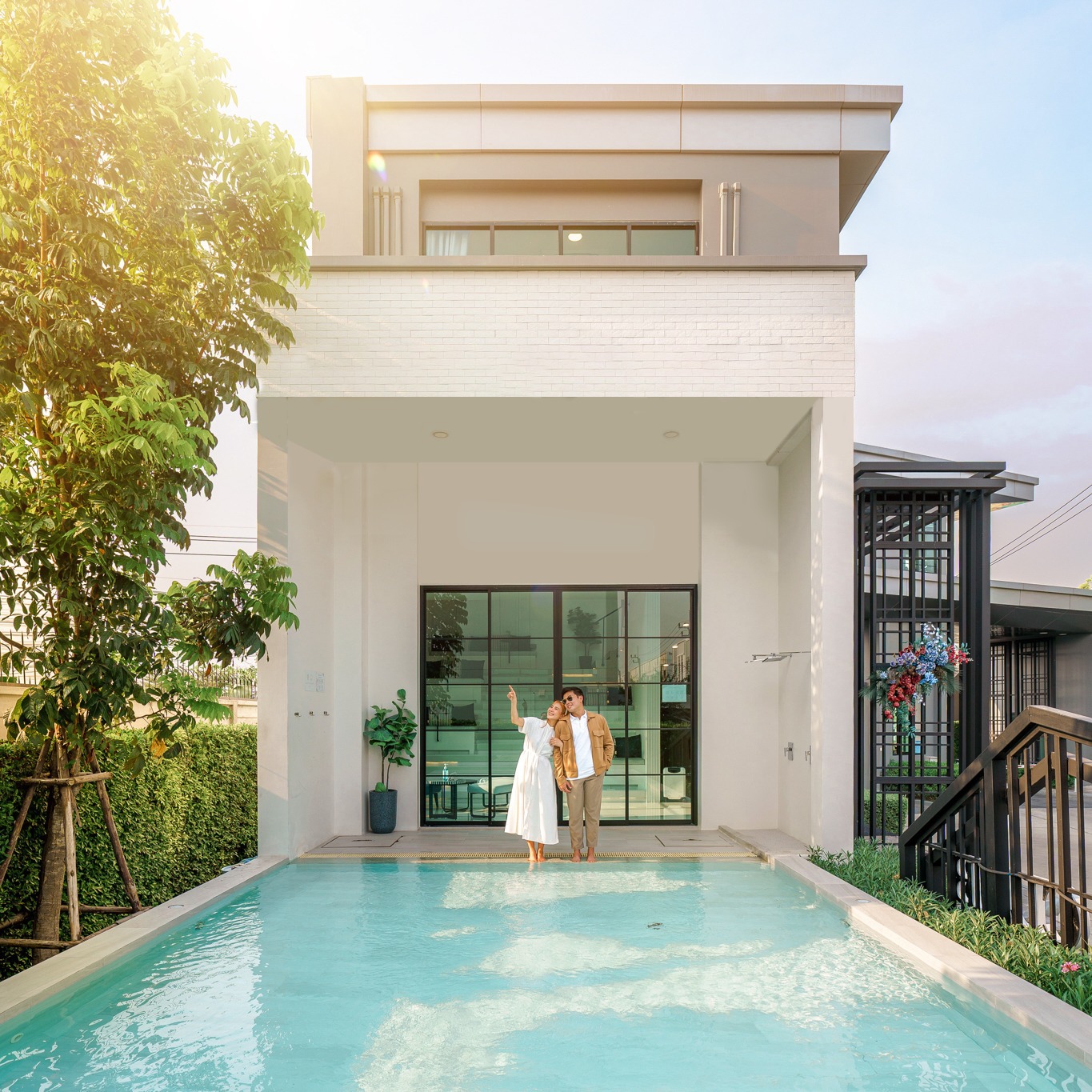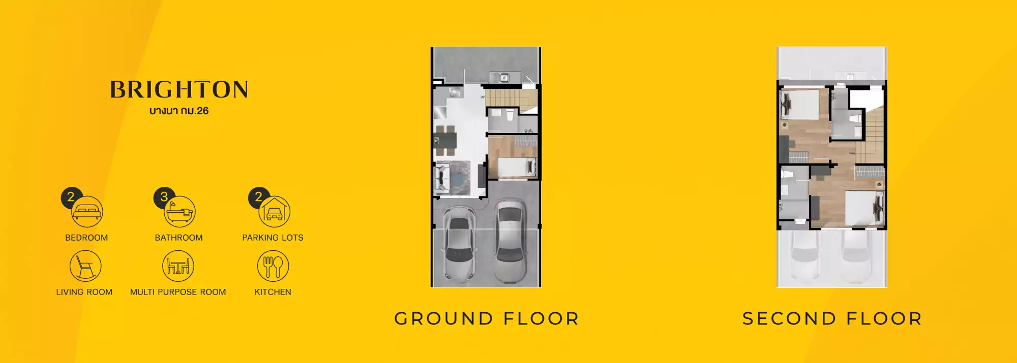 แบบบ้าน : CLIFF ทาวน์โฮม ชั้นเดียว ขนาดพื้นที่ใช้สอย 82 ตร.ม. 2 ห้องนอน 1 ห้องน้ำ 1 ห้องรับแขก ที่จอดรถในร่ม 1 คัน แบบบ้าน : COSMO-COMET บ้านแฝด ชั้นเดียว ขนาดพื้นที่ใช้สอย 95 ตร.ม. 2 ห้องนอน 1 ห้องน้ำ 1 ห้องรับแขก ที่จอดรถในร่ม 1 คัน