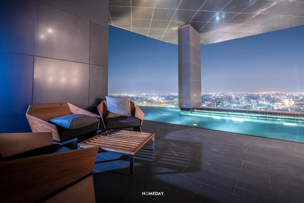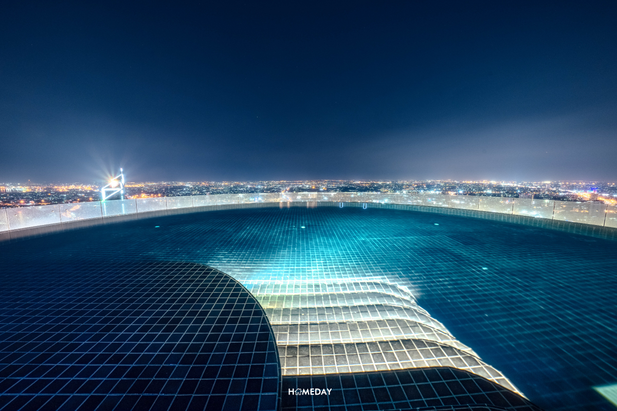 ทางด้านของชั้น 50 บนอาคารพักอาศัย จะเป็นอีกหนึ่งจุดที่มีพื้นที่ส่วนกลางรองรับอยู่ ทั้งสระว่ายน้ำระบบเกลือลอยฟ้าแบบอินฟินิตี้ มาพร้อมจากุซซี่ให้คุณดื่มด่ำเพลิดเพลินไปกับสายลมและวิวสวย ๆ อีกทั้งยังมีห้อง Sauna ที่พื้นที่ส่วนนี้อีกด้วยครับ