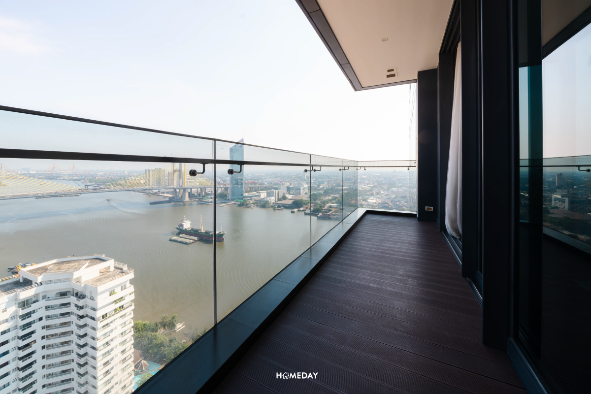 ระเบียงของ Master Bedroom รับวิวเจ้าพระยาสวย ๆ อีกเช่นกัน พื้นที่เพียงพอสำหรับวางมุมโต๊ะ-เก้าอี้ จิบเครื่องดื่มดี ๆ สูดอากาศยามเช้าได้ครับ