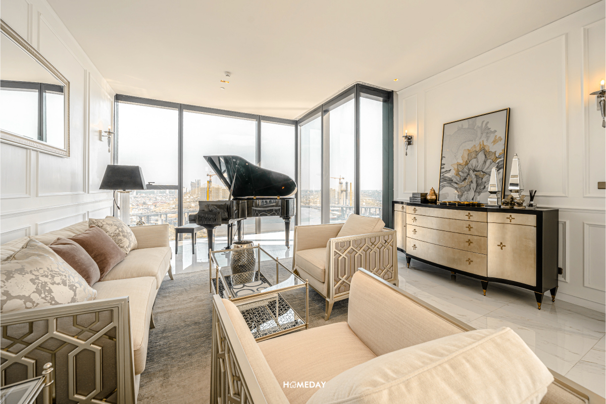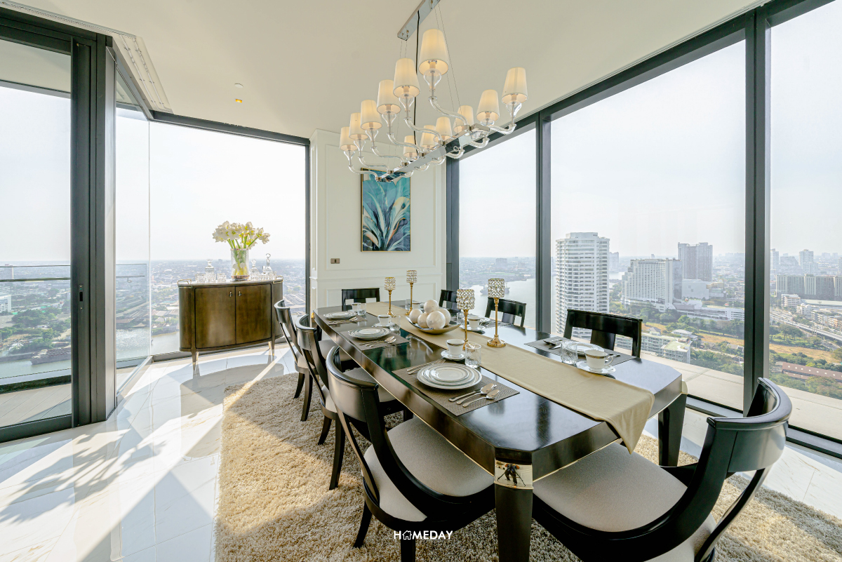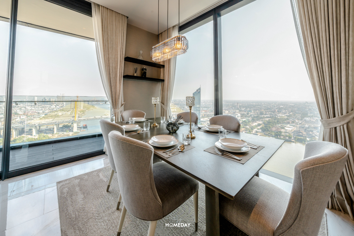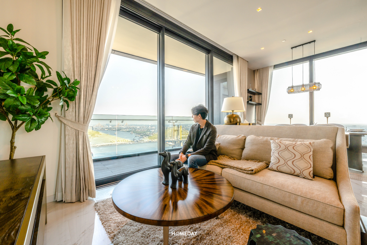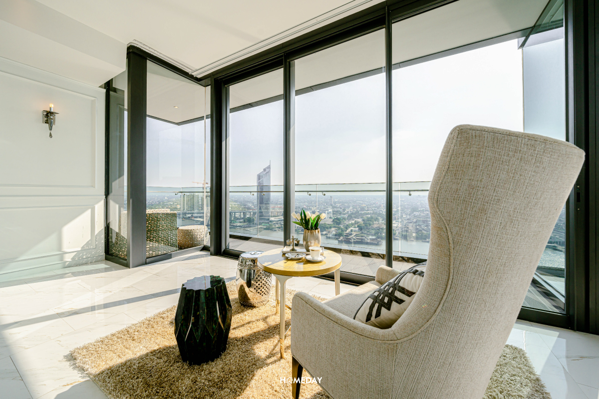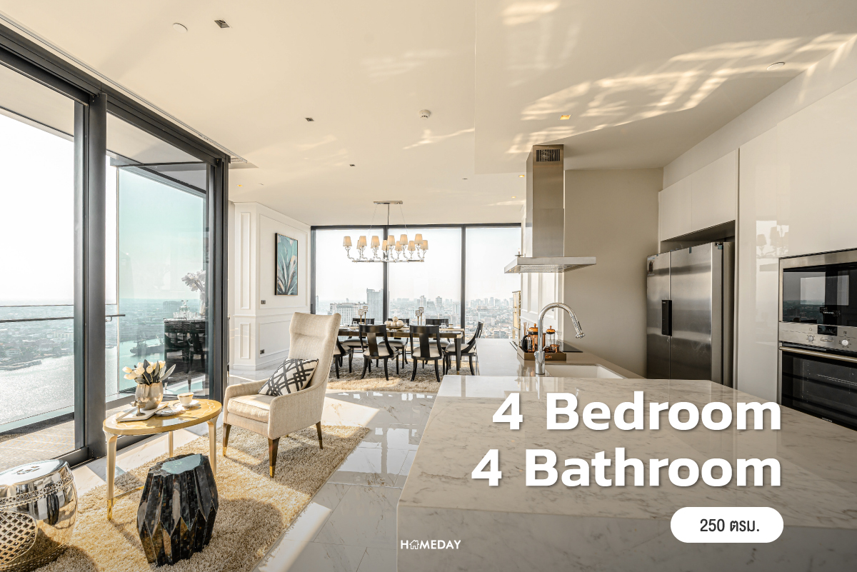 มาเริ่มสำรวจที่ห้องขนาด 4 ห้องนอน 4 ห้องน้ำ ของทางโครงการคณาพญา เรสซิเดนซ์ (Canapaya Residences) กันก่อนเลยครับ จุดเด่นที่มีเหมือนกันทุกห้อง คือความสูงจากพื้นถึงเพดานที่มากถึง 3 เมตร ได้ห้องโปร่ง โล่ง กว้าง เสมือนอยู่อาศัยในบ้านหลังใหญ่เลยก็ว่าได้ครับ และทุกห้องได้กระจกรับวิวบ้านใหญ่เต็มความสูง รับวิวแม่น้ำและวิวเมืองสวย ๆ ได้อย่างเต็มที่ อีกทั้งยังมีคุณสมบัติในการกันเสียง กันลม และความร้อน ไม่ต้องกลัวว่ากระจกใส ๆ แบบนี้จะเป็นปัญหาเลยครับ