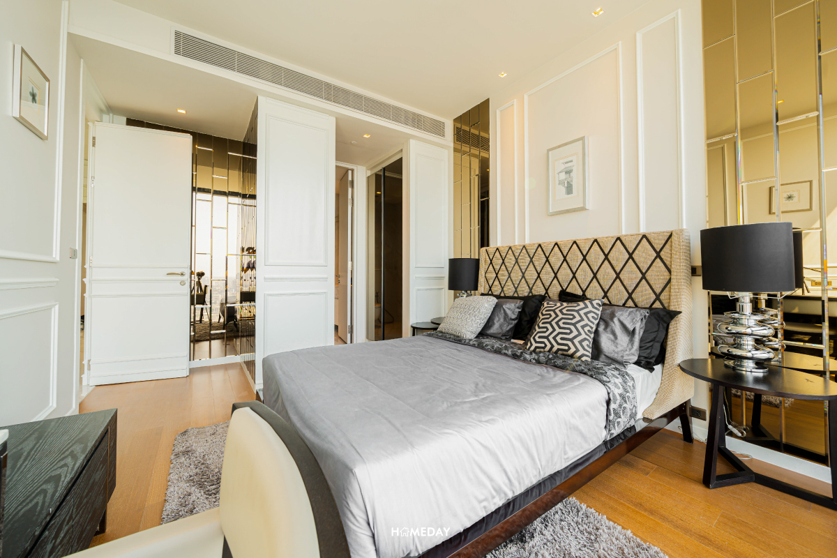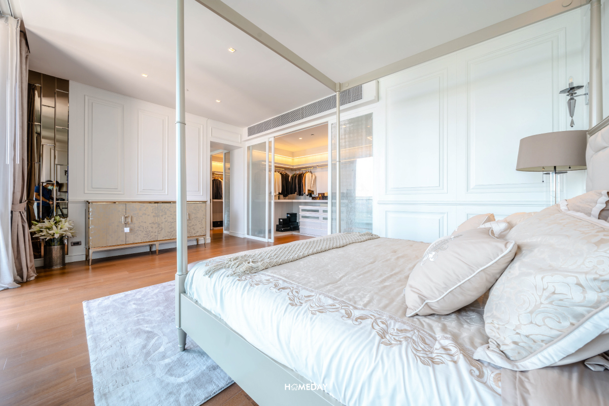 ส่วนของพื้นที่พักผ่อนส่วนตัวอย่างห้องนอน Master Bedroom ของห้องนี้ ก็จัดเต็มมาให้ทั้งระเบียงส่วนตัว และ Walk-in Closet ขนาดใหญ่ ห้องน้ำในตัว พร้อมกับอ่างอาบน้ำครับ พื้นที่ส่วนวางเตียงนอนนั้น สามารถวางไซซ์ขนาด 6 ฟุตได้อย่างสบาย ๆ ปลายเตียงเหลือพื้นที่กว้าง ๆ วางชั้นทีวีพร้อมโซฟาปลายเตียงได้เลย