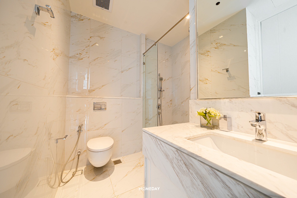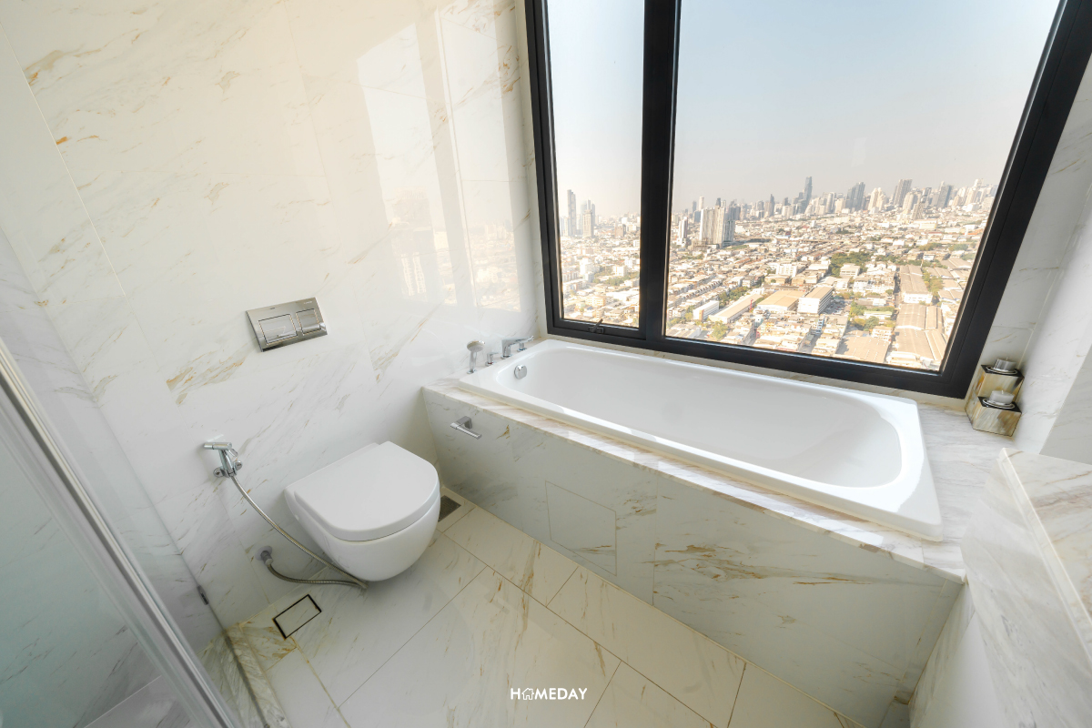 ห้องน้ำของ Master Bedroom มาพร้อมอ่างอาบน้ำอีกเช่นเคย แช่น้ำชมวิวเมืองสวย ๆ จากจุดนี้ได้เลยครับ อีกทั้งยังได้ในส่วนของ Shower พร้อม Partition กั้นส่วนเปียก-แห้ง สามารถใช้งานพร้อม ๆ กันช่วงเช้าในเวลาที่เร่งรีบได้ครับ