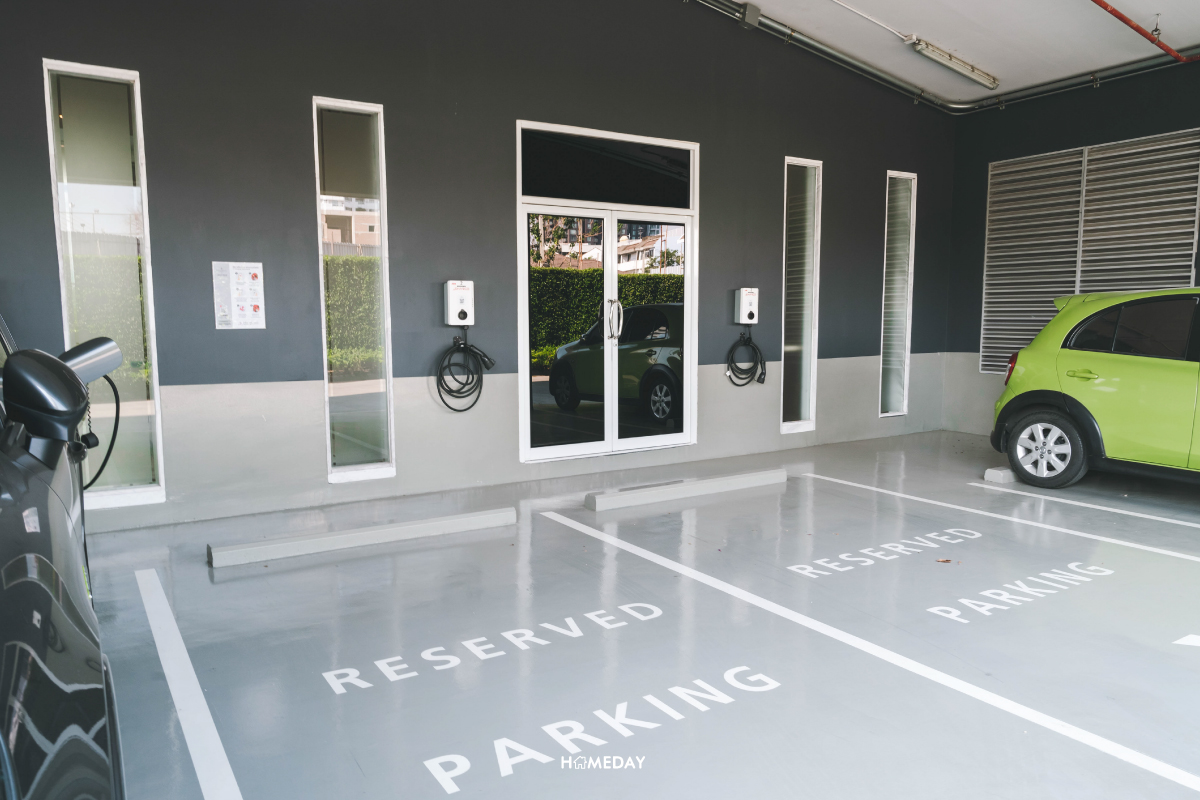 สำหรับลูกบ้านที่ใช้รถไฟฟ้า ทางโครงการมี Private EV Charger (เฉพาะลูกบ้านเท่านั้น) ให้บริการอยู่ด้วยครับ