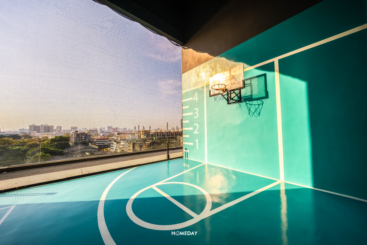 สำหรับใครที่เบื่อ ๆ จากการออกกำลังกายแบบเดิม ๆ ที่ชั้นนี้มีสนามบาสเก็ตบอลให้ได้ใช้กันอีกด้วย ถือว่าหาได้ยากมากครับ สำหรับโครงการที่จะให้ส่วนกลางจัดเต็มมาแบบนี้