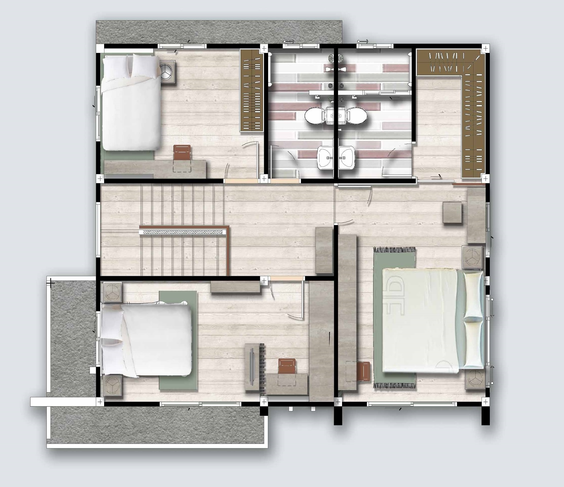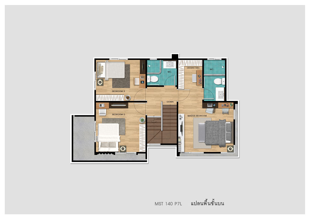 ทำเลที่ตั้ง ถนนเลียบเมืองอุบลราชธานี ต.แสนสุข อ.วารินชำราบ จ.อุบลราชธานี แบบบ้าน : ศุภลักขณา บ้านเดี่ยว 2 ชั้น พื้นที่ใช้สอย 150 ตร.ม. ขนาด 3 ห้องนอน 3 ห้องน้ำ พร้อมที่จอดรถ 2 คัน