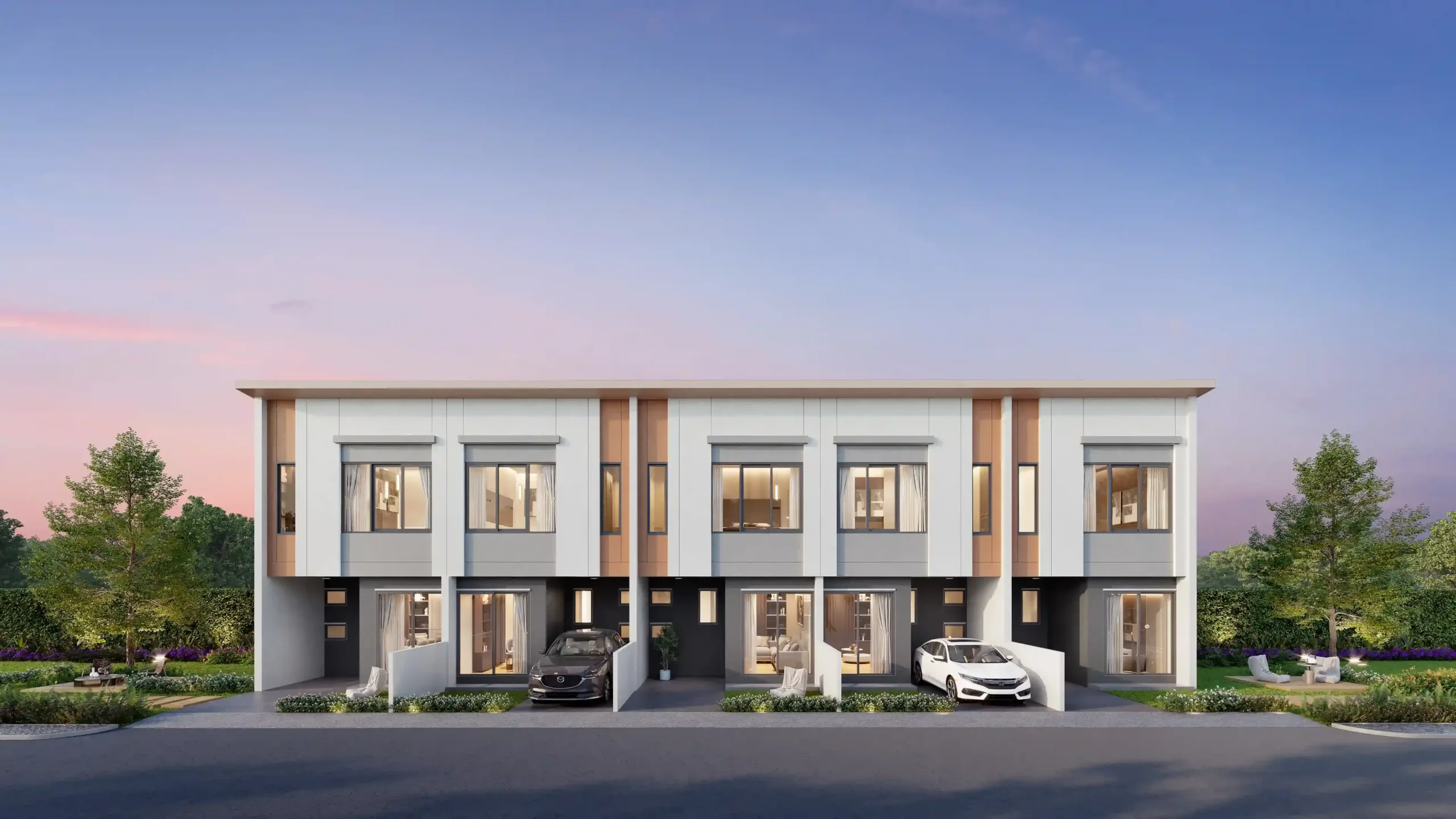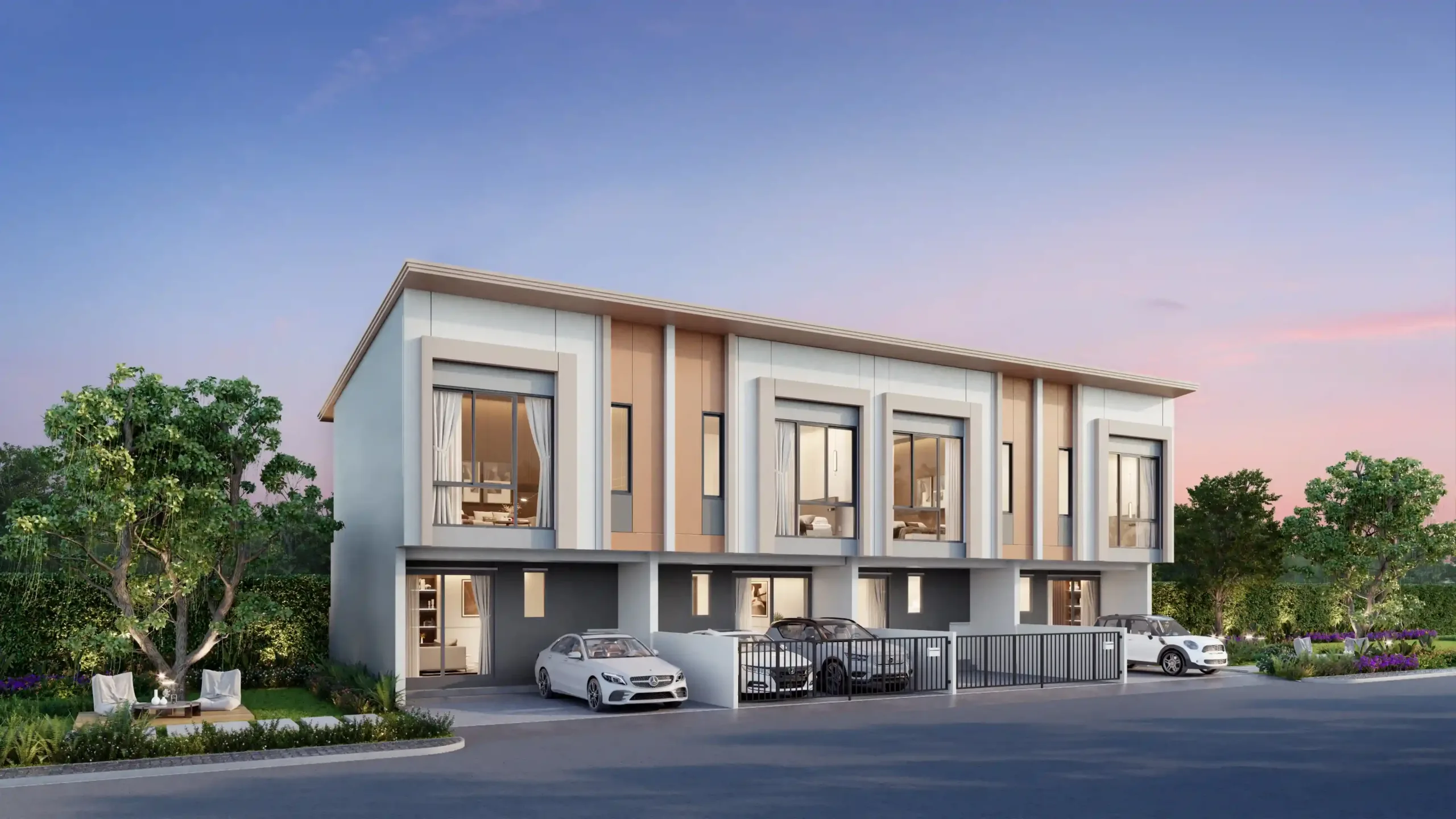 แบบบ้าน : ANILA พื้นที่ใช้สอย 121 ตร.ม. 3 ห้องนอน 3 ห้องน้ำ 2 ที่จอดรถ 1 ห้องครัว 1 ห้องรับประทานอาหาร แบบบ้าน : ARUNA พื้นที่ใช้สอย 176 ตร.ม. 3 ห้องนอน 3 ห้องน้ำ 2 ที่จอดรถ 1 ห้องครัว