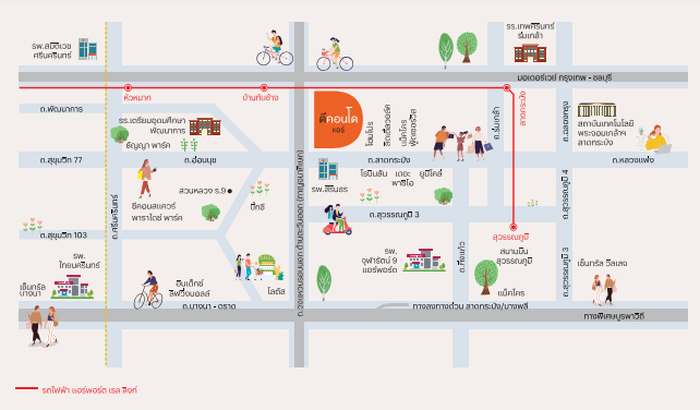 การเดินทาง รถไฟฟ้า BTS สถานีสายหยุดถนนพหลโยธินถนนเทพรักษ์ดอนเมืองโทลล์เวย์ทางพิเศษฉลองรัช สถานศึกษาม.เกษตรศาสตร์ ศรีราชารร.เซนต์ปอลคอนแวนต์ ศรีราชารร.อัสสัมชัญ ศรีราชารร.ดาราสมุทร ศรีราชา