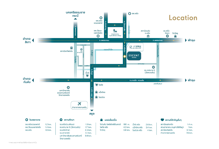 การเดินทาง ถ.สะพานนนทบุรี-บางบัวทอง (345)ถ.ราชพฤกษ์ถ.ชัยพฤกษ์ถ.กาญจนาภิเษก ทำเลที่ตั้ง ต.คลองข่อย อ.ปากเกร็ด จ.นนทบุรี 11120 สิ่งอำนวยความสะดวกรอบโครงการ