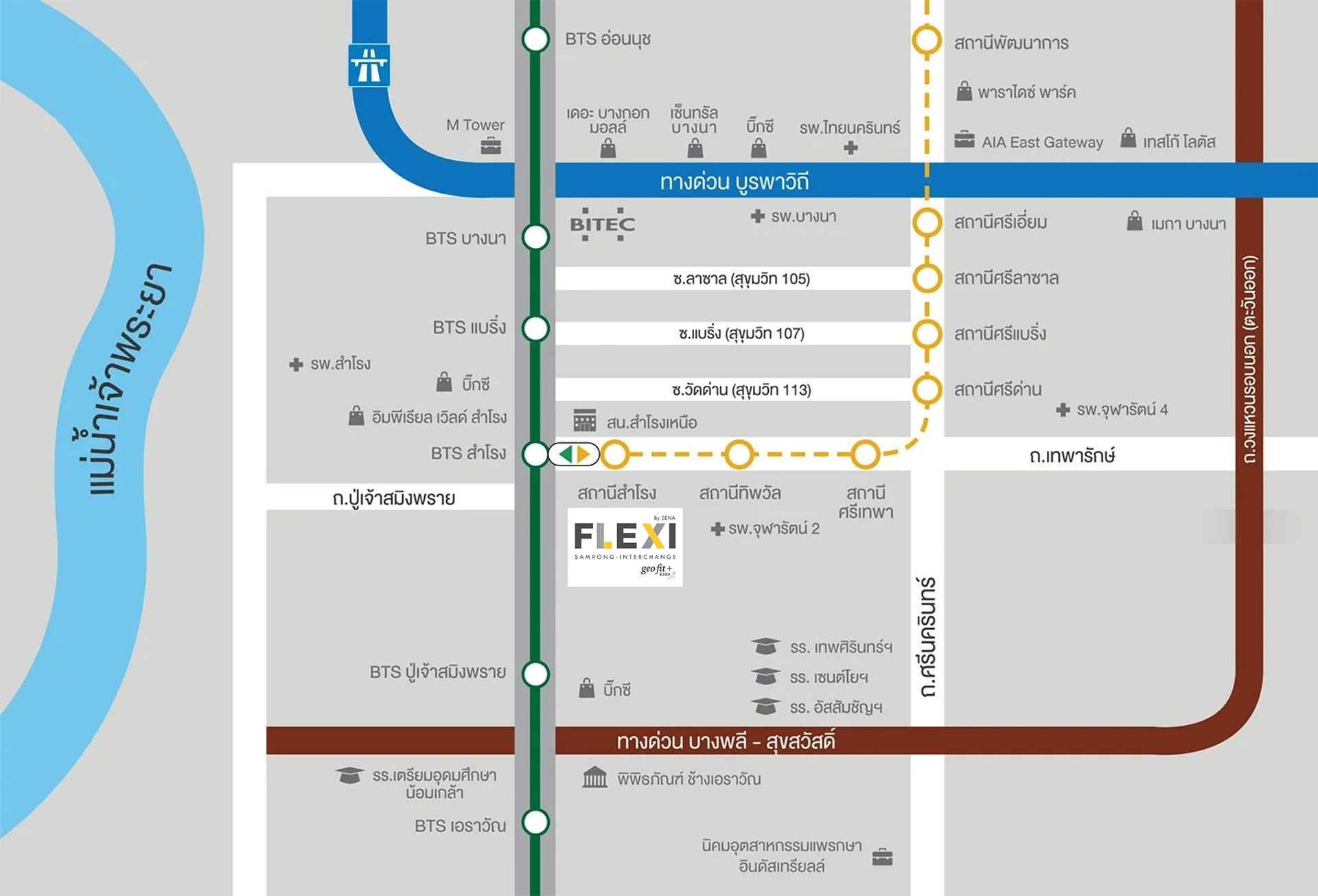 สถานศึกษามหาวิทยาลัยราชภัฏราชนครินทร์ 7.3 กม. ห้างสรรพสินค้าโฮมโปร ฉะเชิงเทรา 6.3 กม.บิ๊กซี ฉะเชิงเทรา 7.3 กม.บิ๊กซี ฉะเชิงเทรา 2 8 กม.แม็คโคร ฉะเชิงเทรา 11.9 กม.