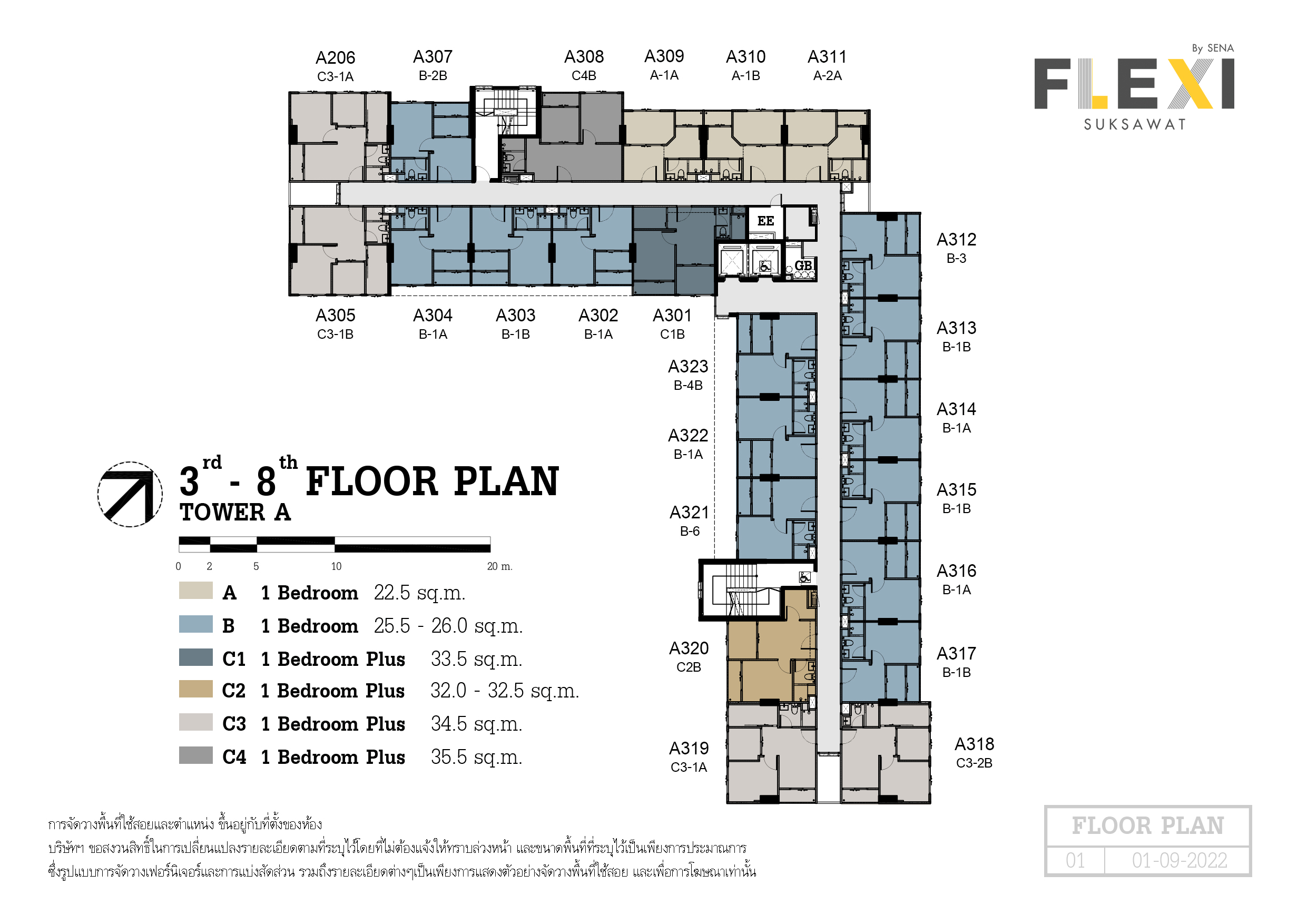 แบบแปลน ยูนิตแปลน 1 Bedroom 1A1 (27 ตร.ม.) 1 Bedroom 1A2 (27.5 ตร.ม.) 1 Bedroom 1A3 (28 ตร.ม.) 1 Bedroom 1B1 (35 ตร.ม.) 1 Bedroom 1B2 (35 ตร.ม.) 1 Bedroom Plus PA1 (37 ตร.ม.)