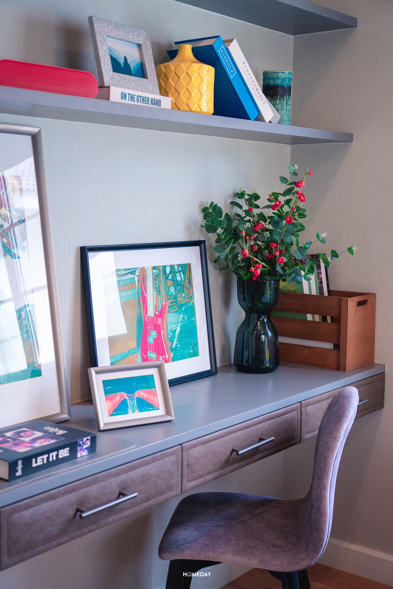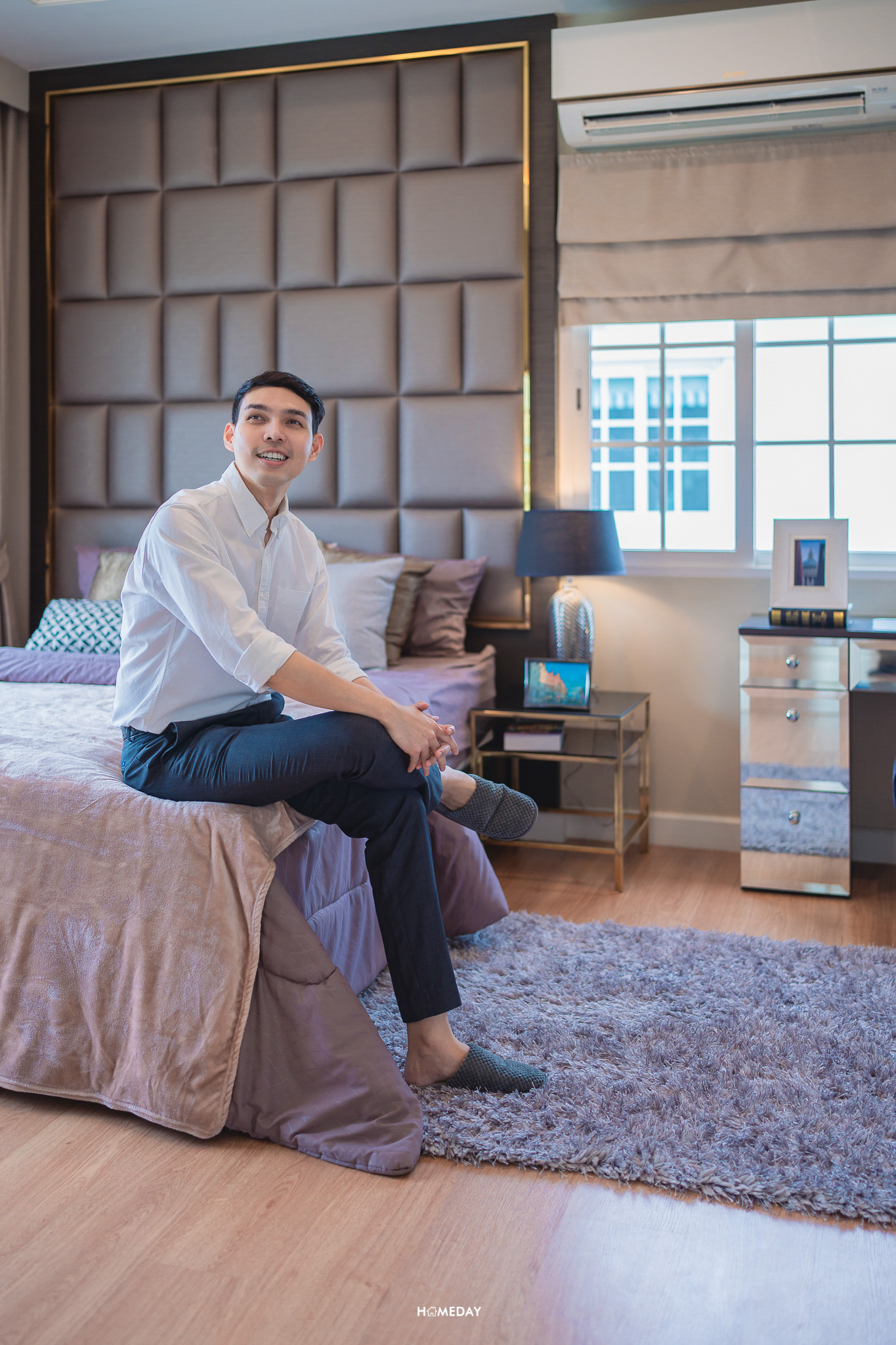 แบ่งเป็นมุมทำงาน มุมพักผ่อน และ Walk-in Closet ได้อย่างพอดี และลงตัวเลยครับ