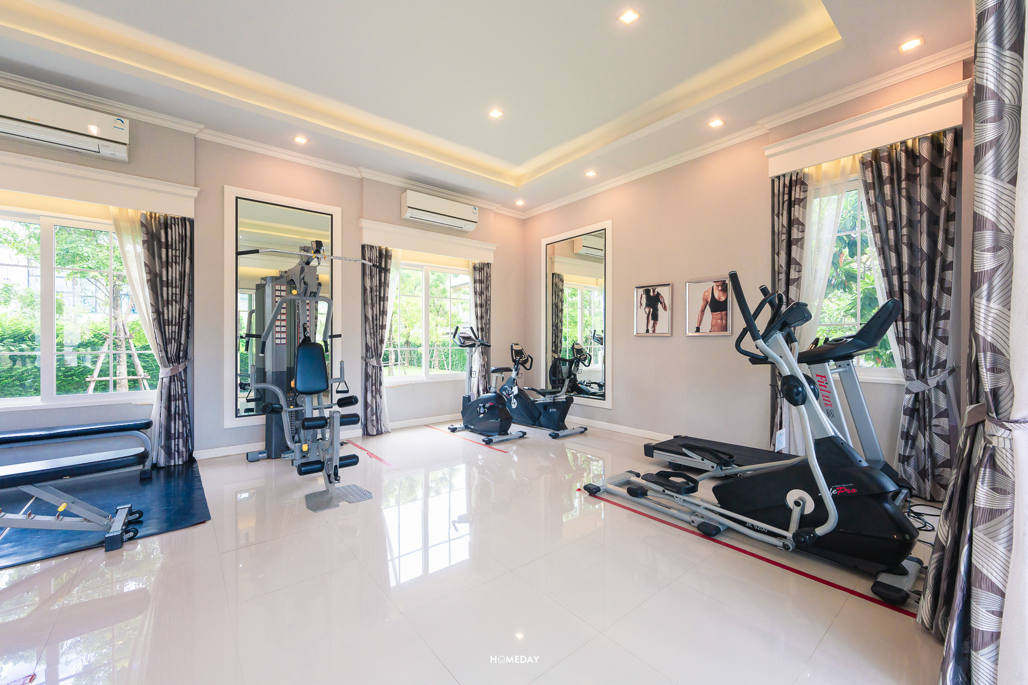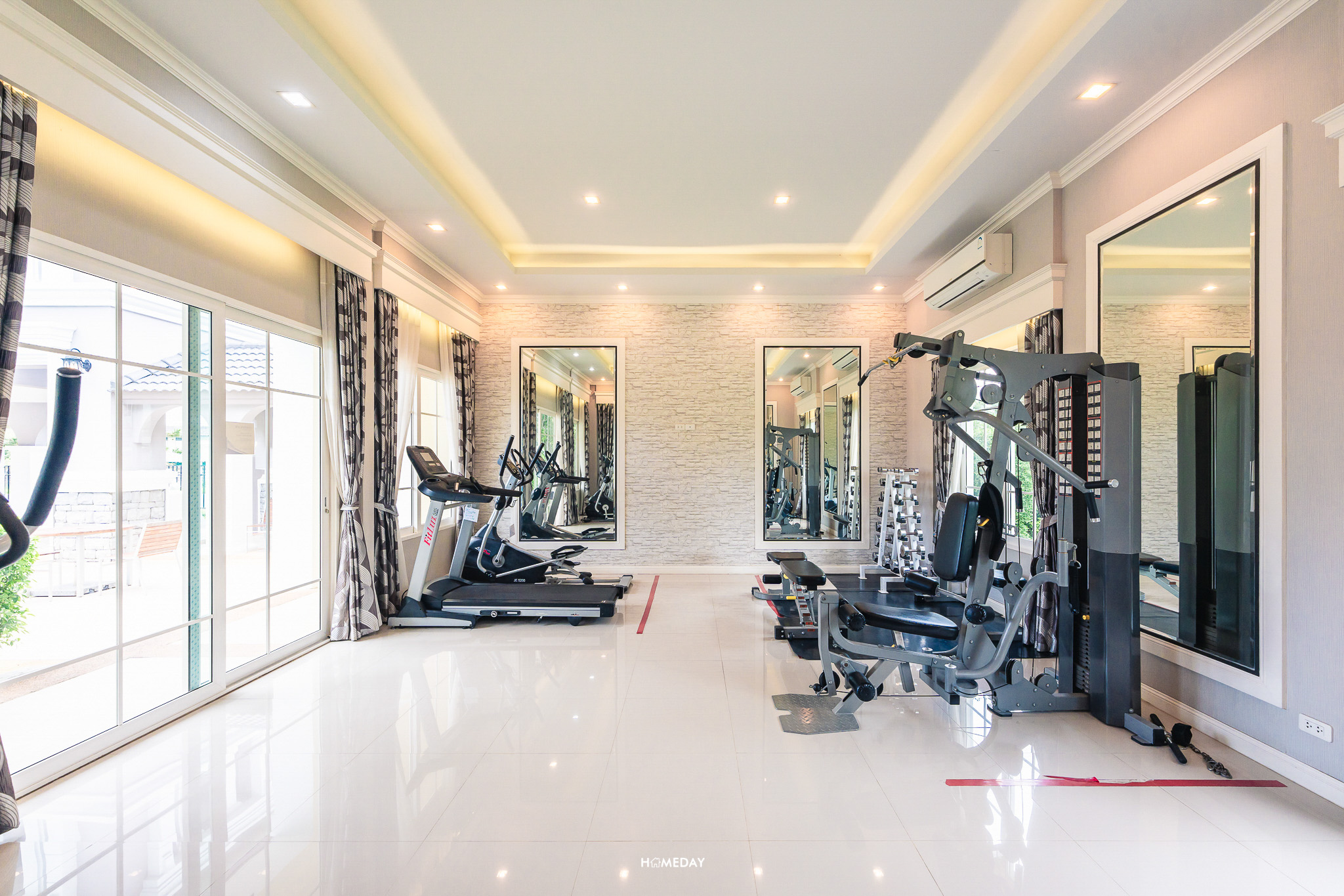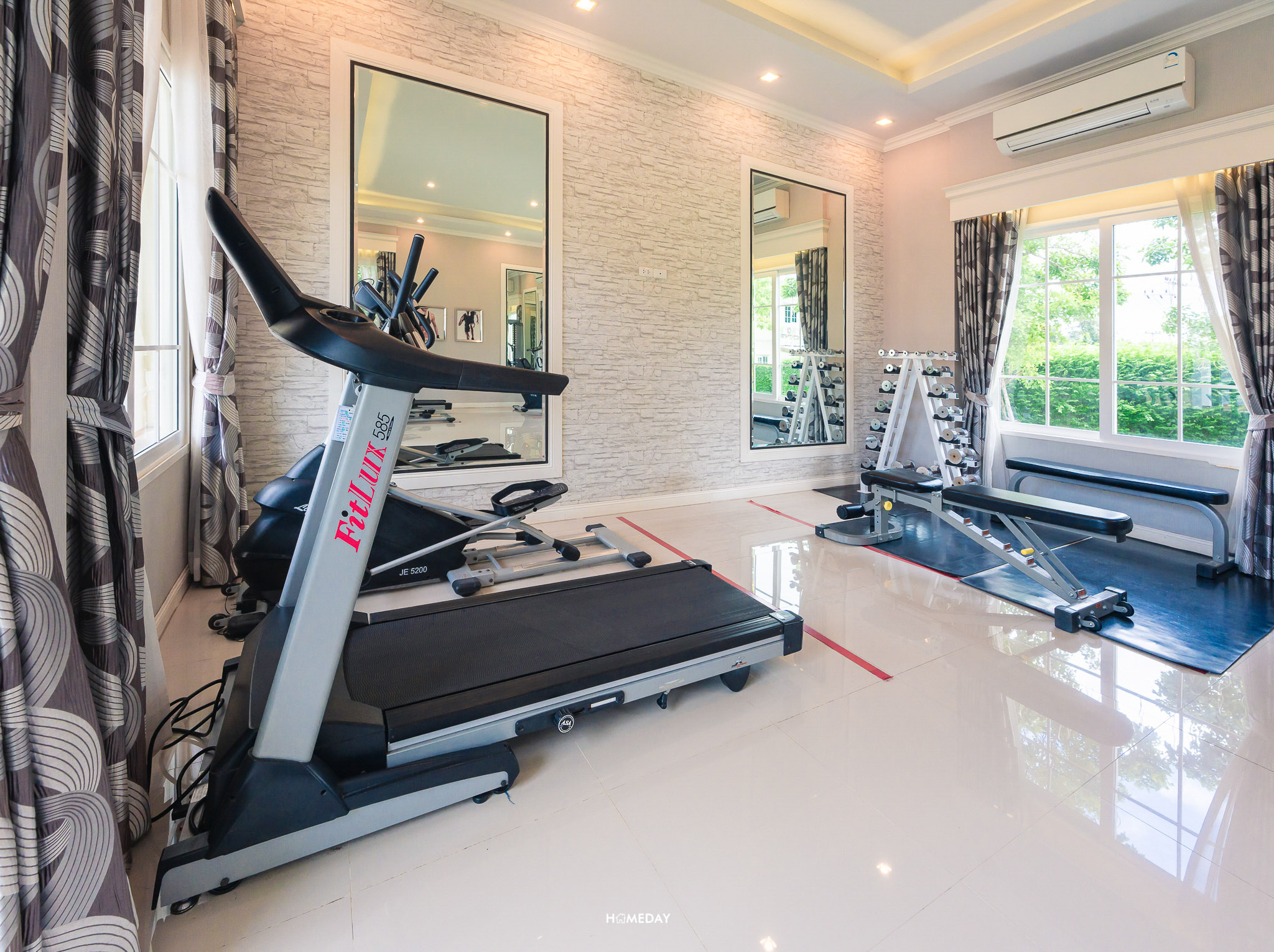 ห้องฟิตเนสจะอยู่ด้านในสุดของอาคาร ภายในโปร่งโล่ง เครื่องออกกำลังกายหลากหลายชนิด ได้อุปกรณ์มาตรฐานครบครัน ไม่ว่าจะอยากดูแลร่างกายหรือเบิร์นส่วนไหน ก็มีให้ทุกรูปแบบ