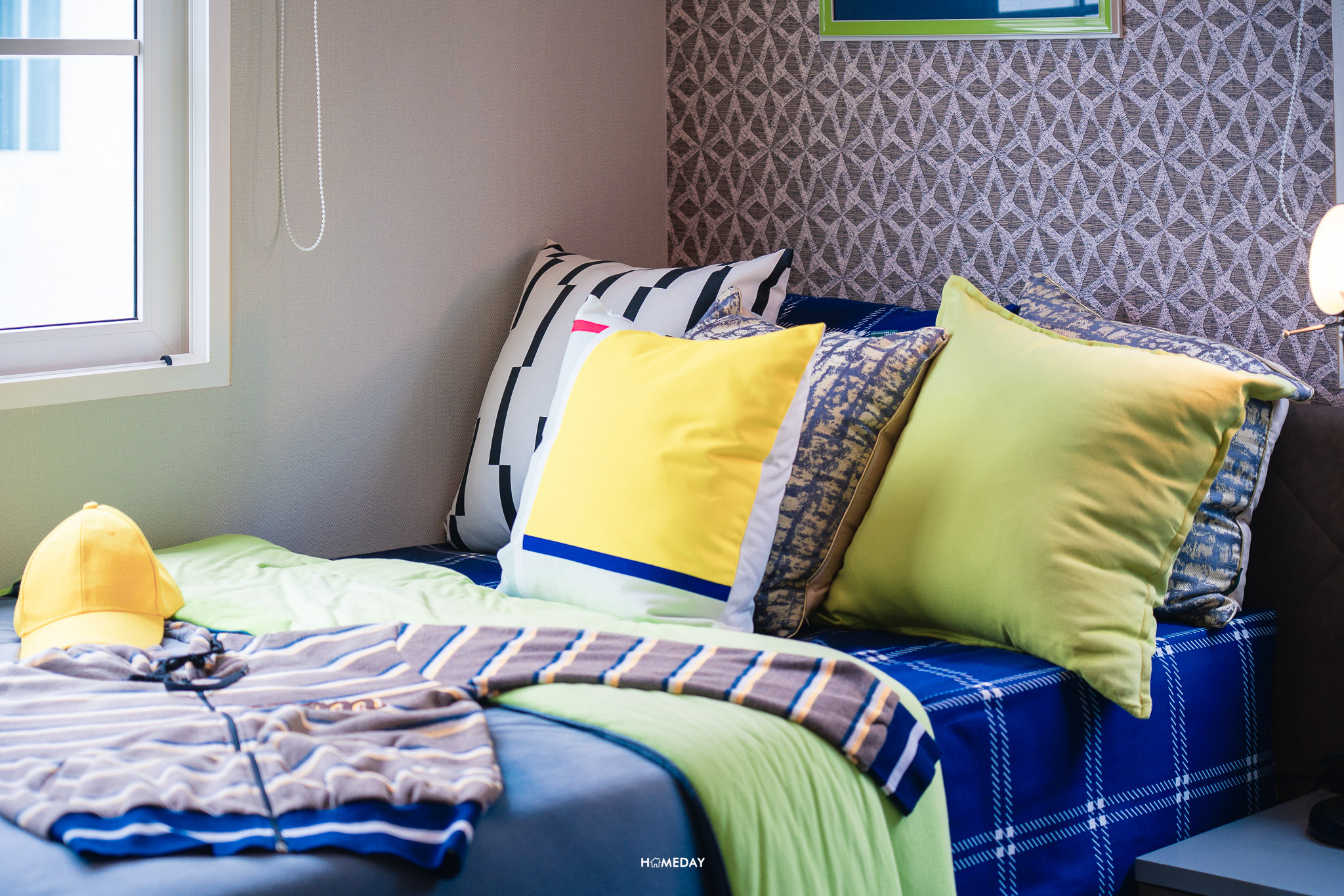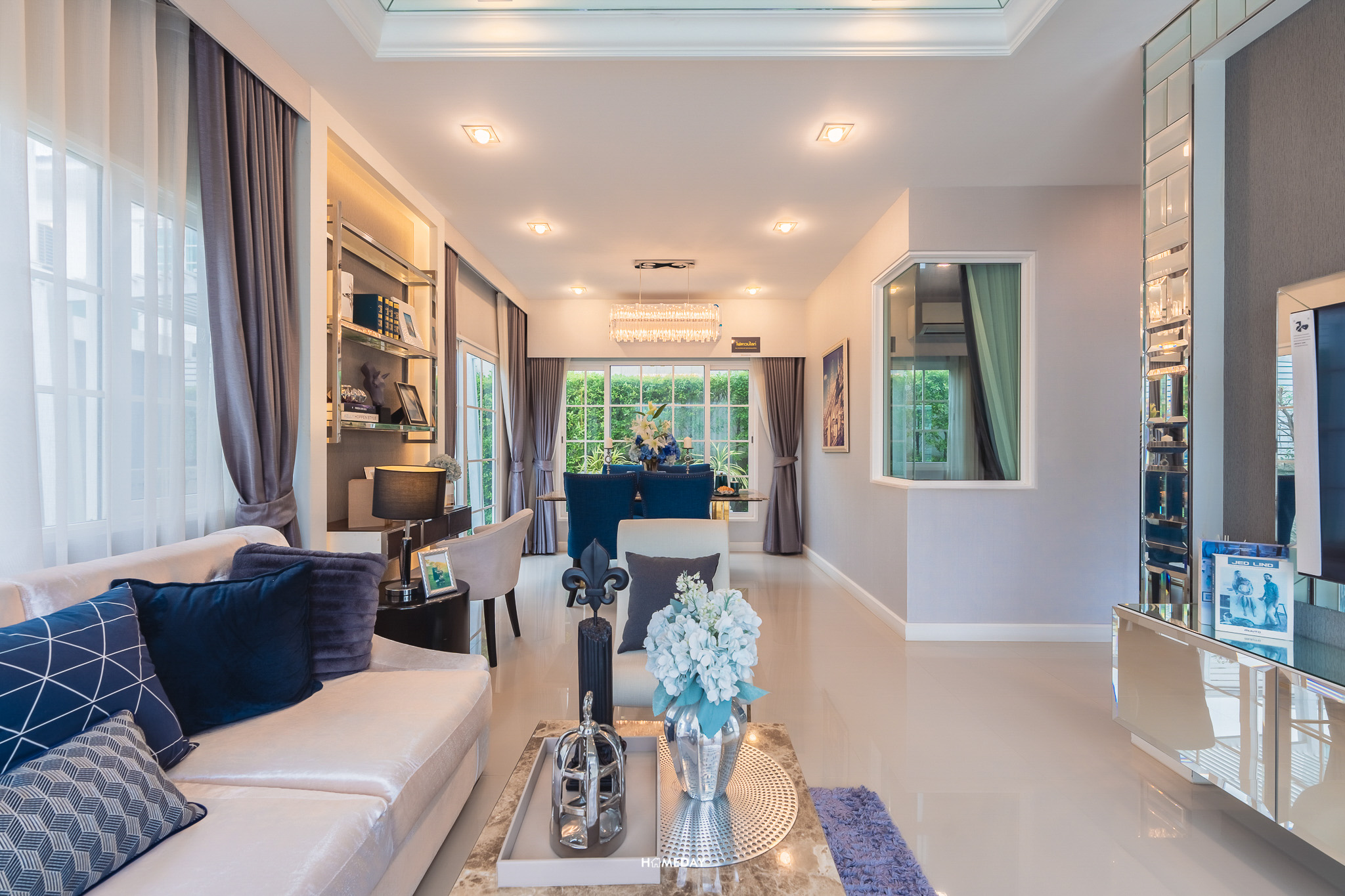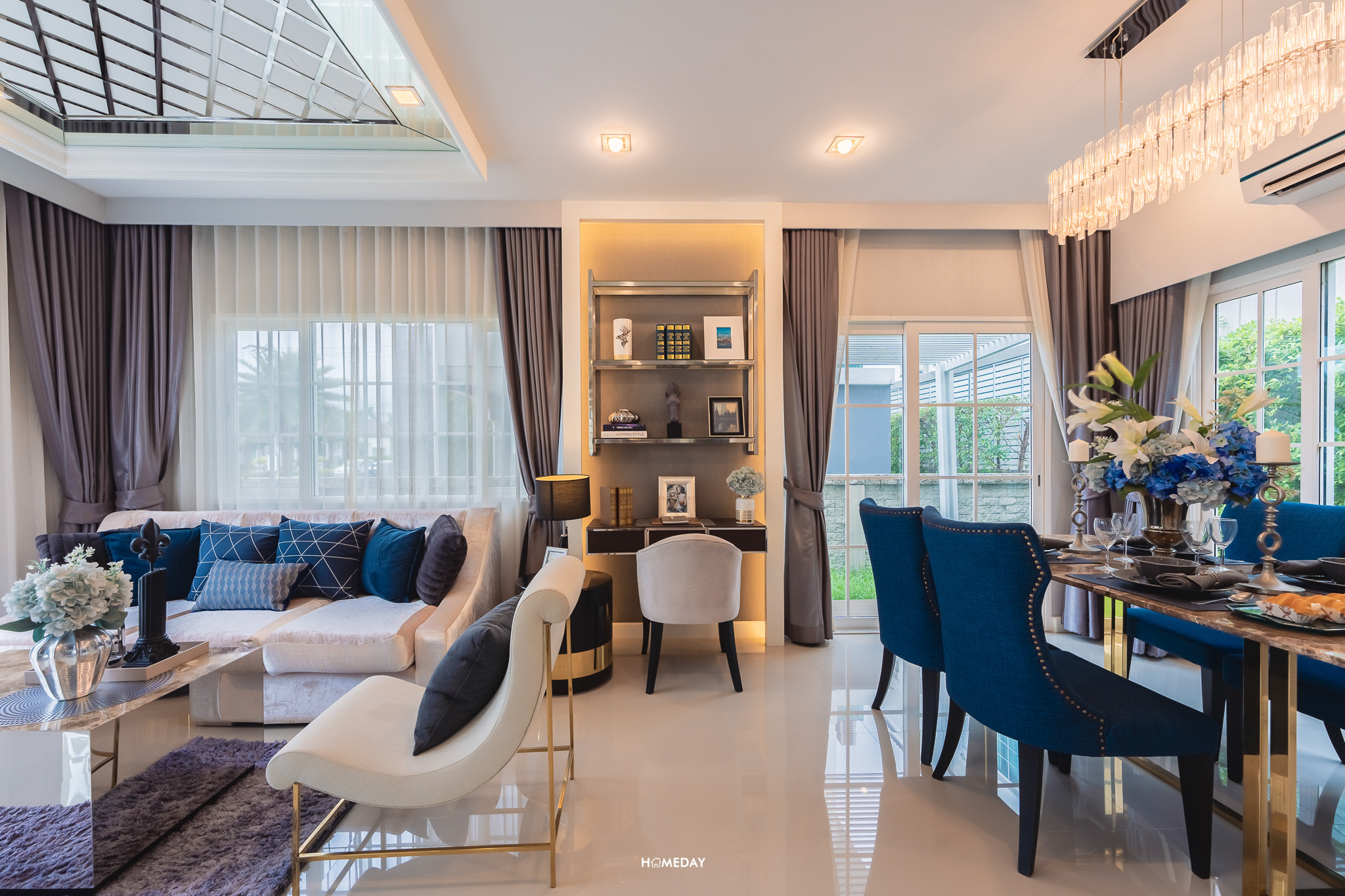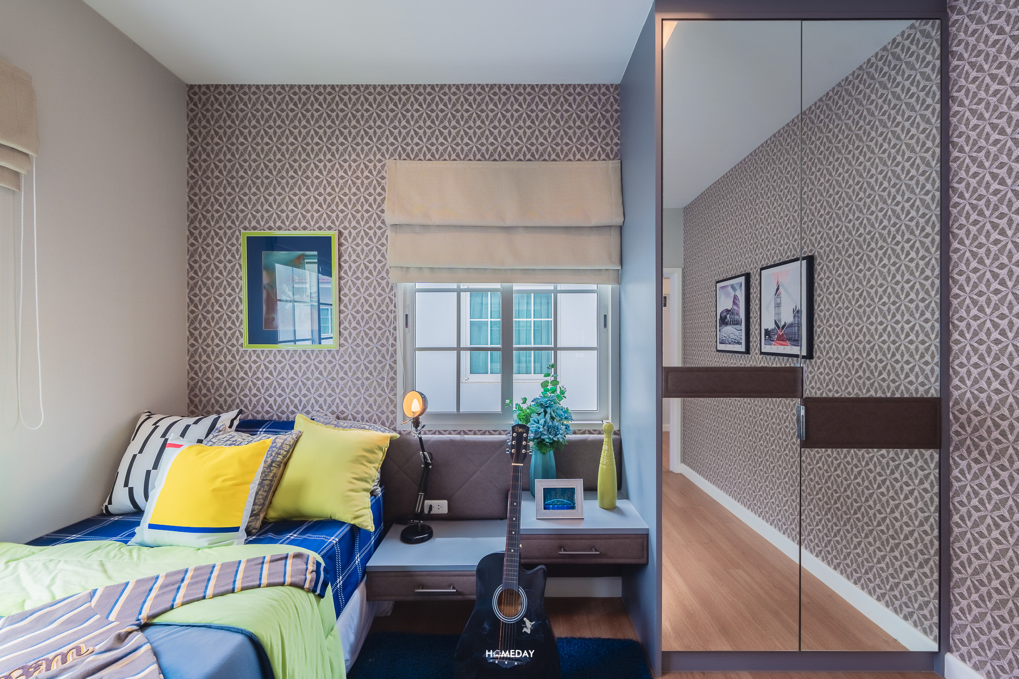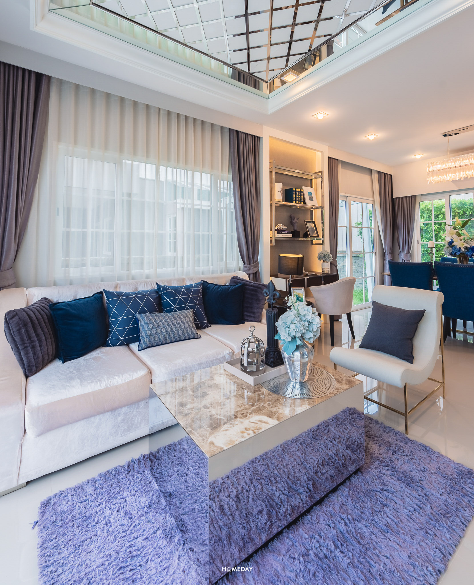 และห้องนอน 3 จะอยู่โซนหลังบ้านด้านในสุด ภายในบ้านตัวอย่างตกแต่งมาเป็นโทนสีน้ำเงิน ฟังก์ชันออกแบบมาเพื่อตอบสนองความต้องการของผู้อยู่อาศัยได้อย่างหลากหลาย ด้วยพื้นที่ใช้สอยที่กว้างขวาง สามารถจัดวางเฟอร์นิเจอร์พื้นฐานได้อย่างพอดี