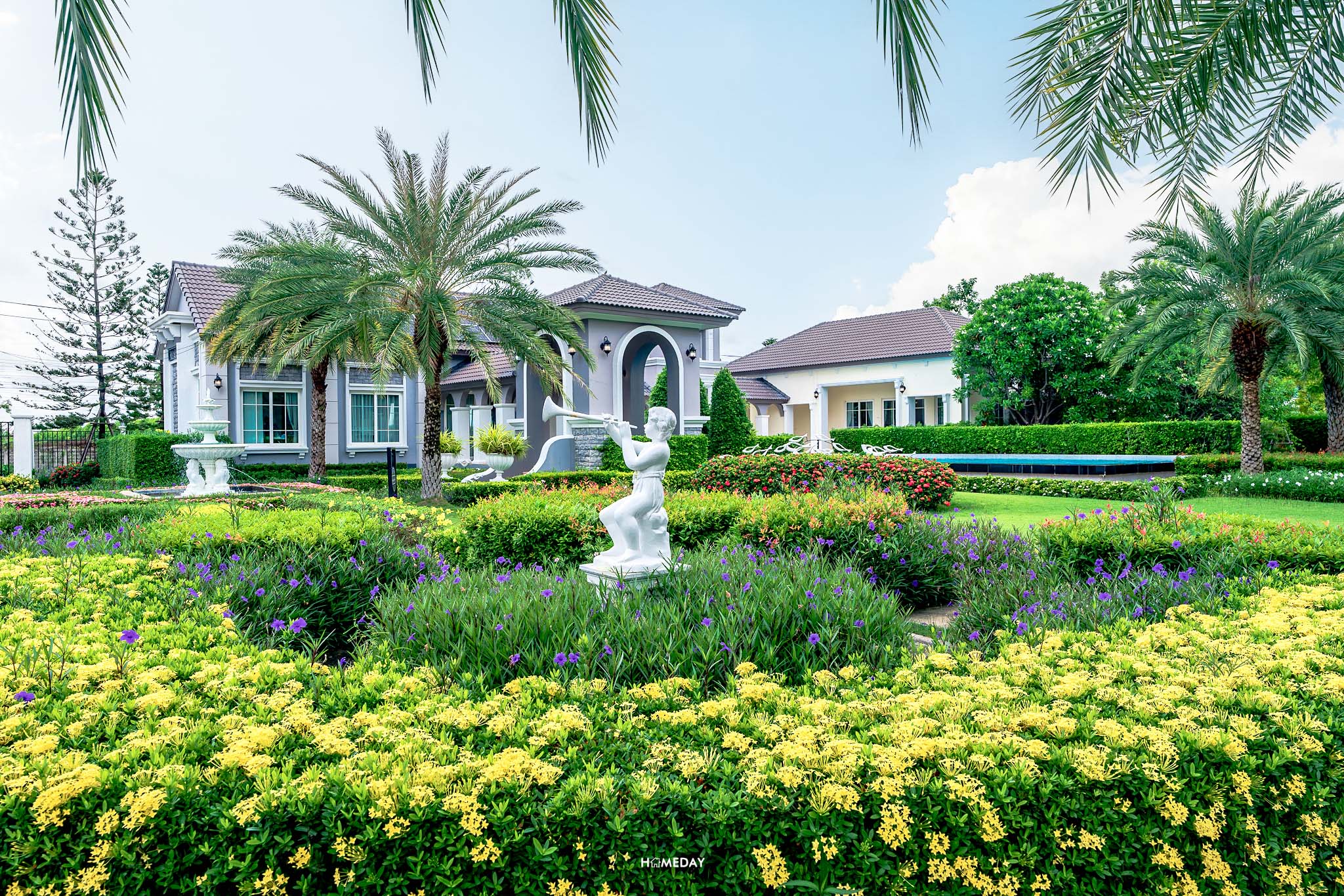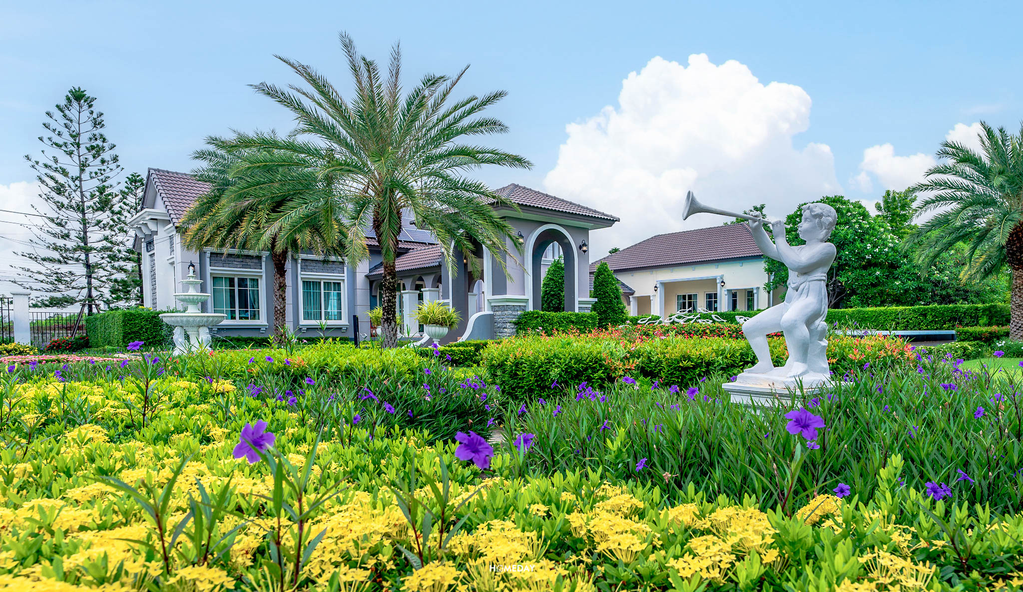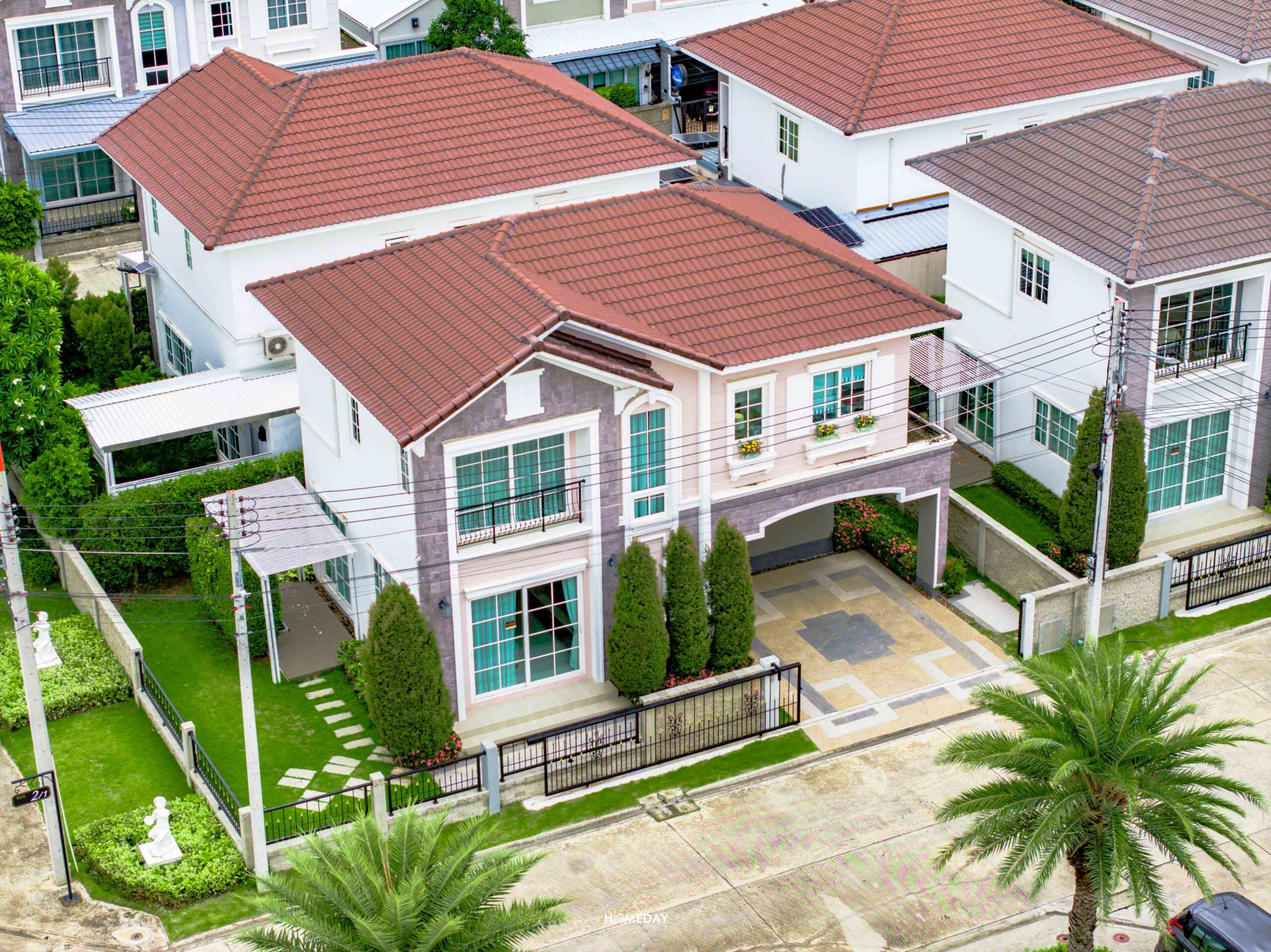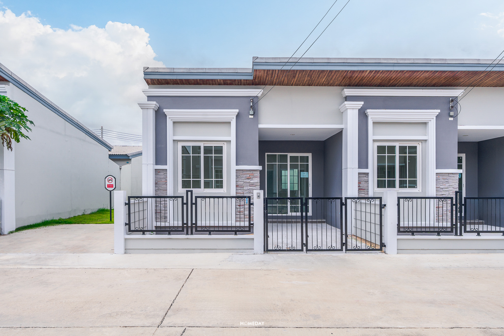 โดดเด่นด้วยสไตล์อังกฤษที่ผสมผสานความทันสมัย โทนสีเทาและขาวที่หรูหราลงตัว ตกแต่งด้วยวัสดุคุณภาพอย่างกระเบื้องลายหินและหินประดับผนัง ช่องแสงขนาดใหญ่ที่เป็นเอกลักษณ์ พร้อมราวระเบียงเหล็กดัดและดีเทลน่ารัก ๆ ตรงหน้าต่างชั้น 2 พร้อมกระถางต้นไม้ริมหน้าต่าง สร้างบรรยากาศสวนอังกฤษให้น่าอยู่ยิ่งขึ้น