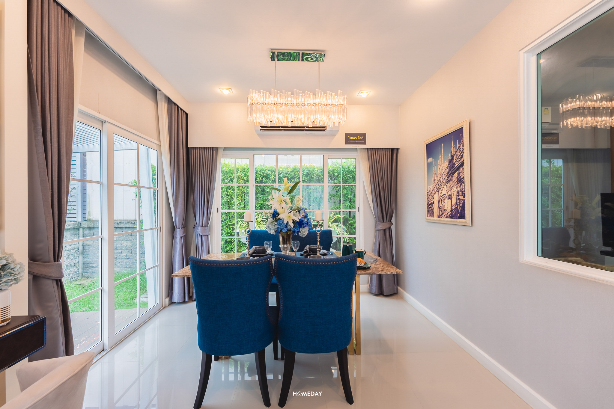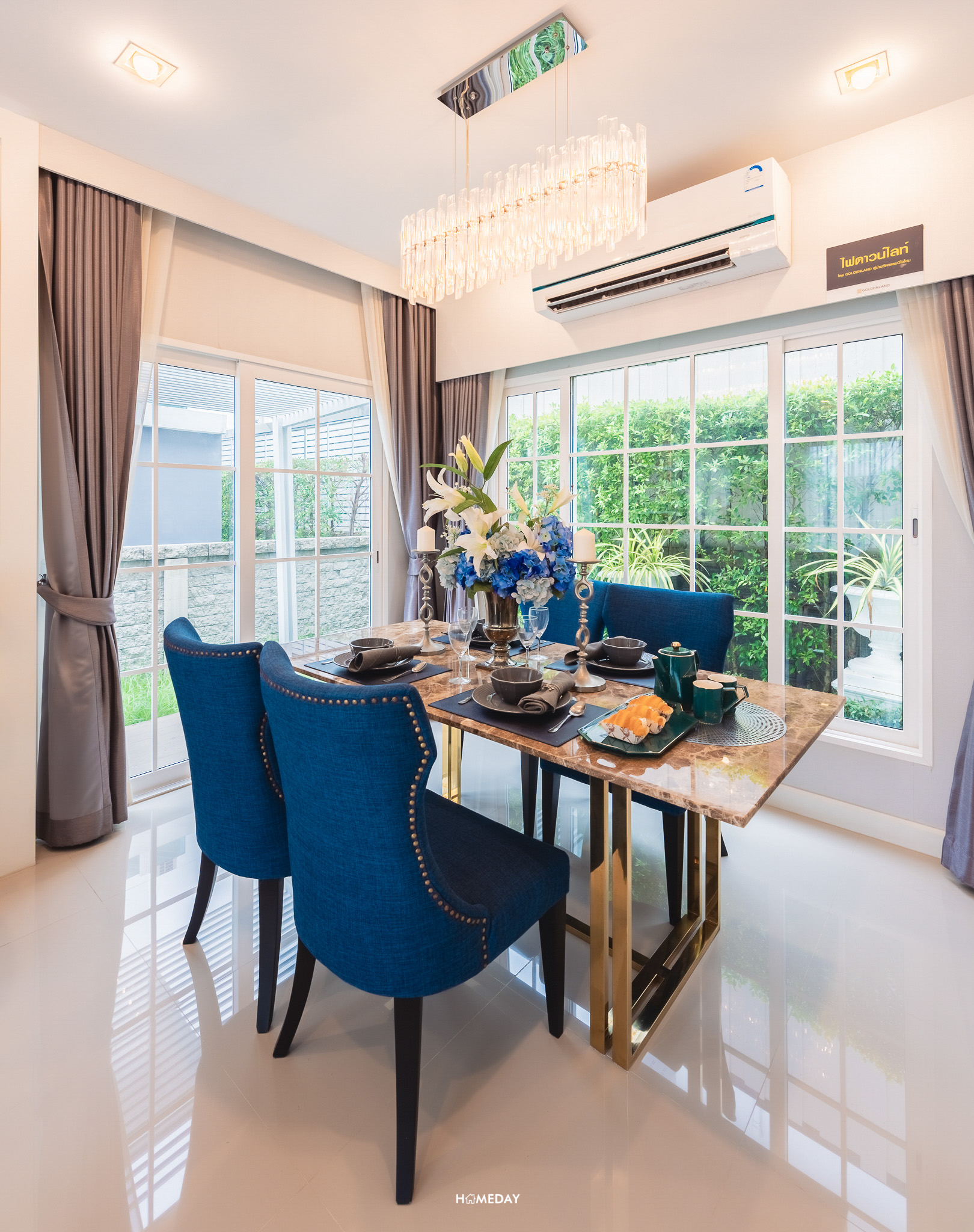 ในส่วนของห้องรับประทานอาหาร มีพื้นที่ใช้งานได้หลากหลายรูปแบบ สามารถจัดชุดโต๊ะรับประทานอาหารขนาด 2-4 ที่นั่งได้ และยังมีพื้นที่เหลือ สามารถเพิ่มเคาน์เตอร์บาร์สำหรับเครื่องดื่มก็ทำได้เช่นกัน พร้อมรับวิวสวนสวยรอบบ้านได้เลย รองรับแขกและเพื่อนฝูงได้สบายครับ