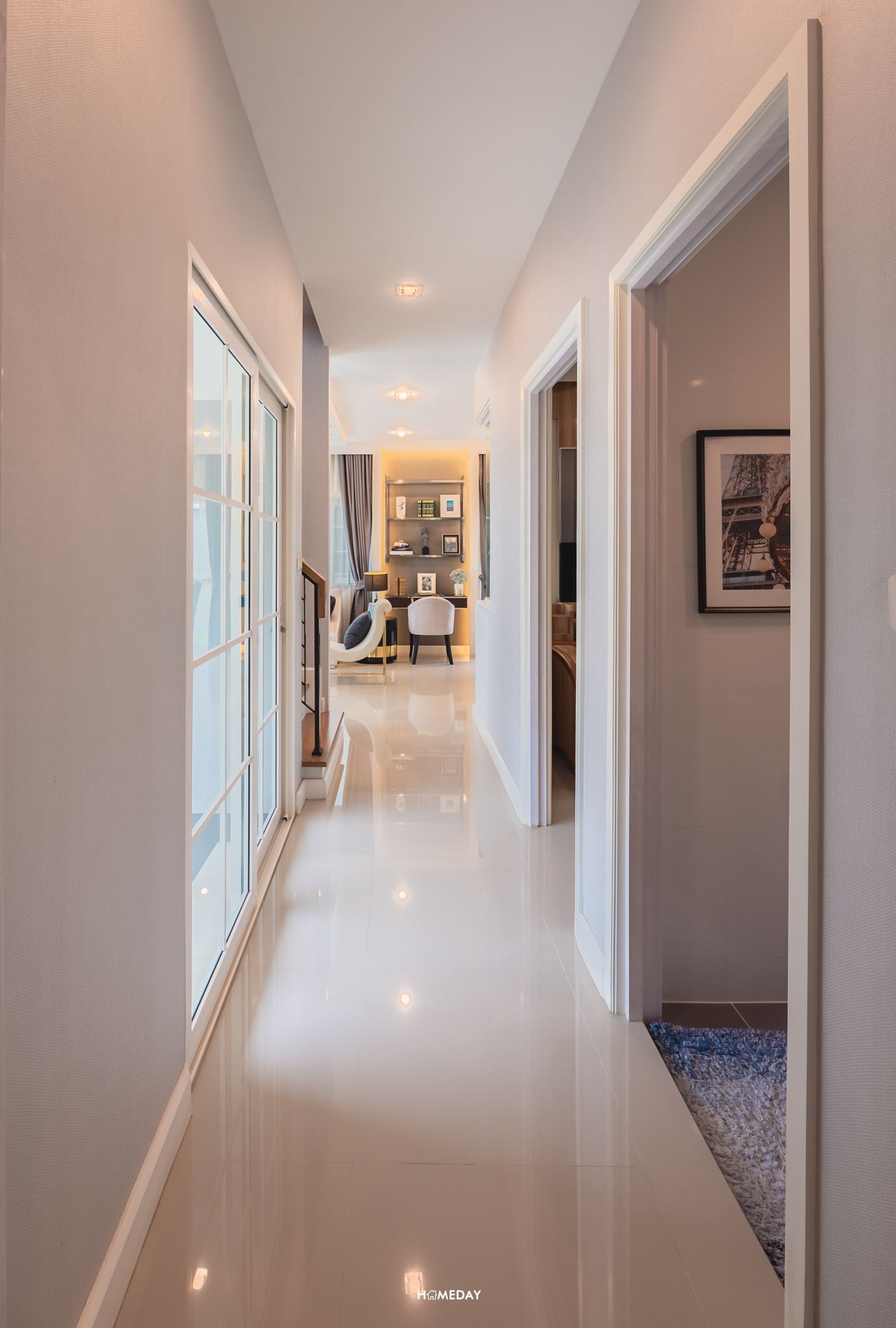 จากห้องครัวมองกลับมายังโถงทางเดิน เราจะขึ้นไปสำรวจยังชั้น 2 กันครับ
