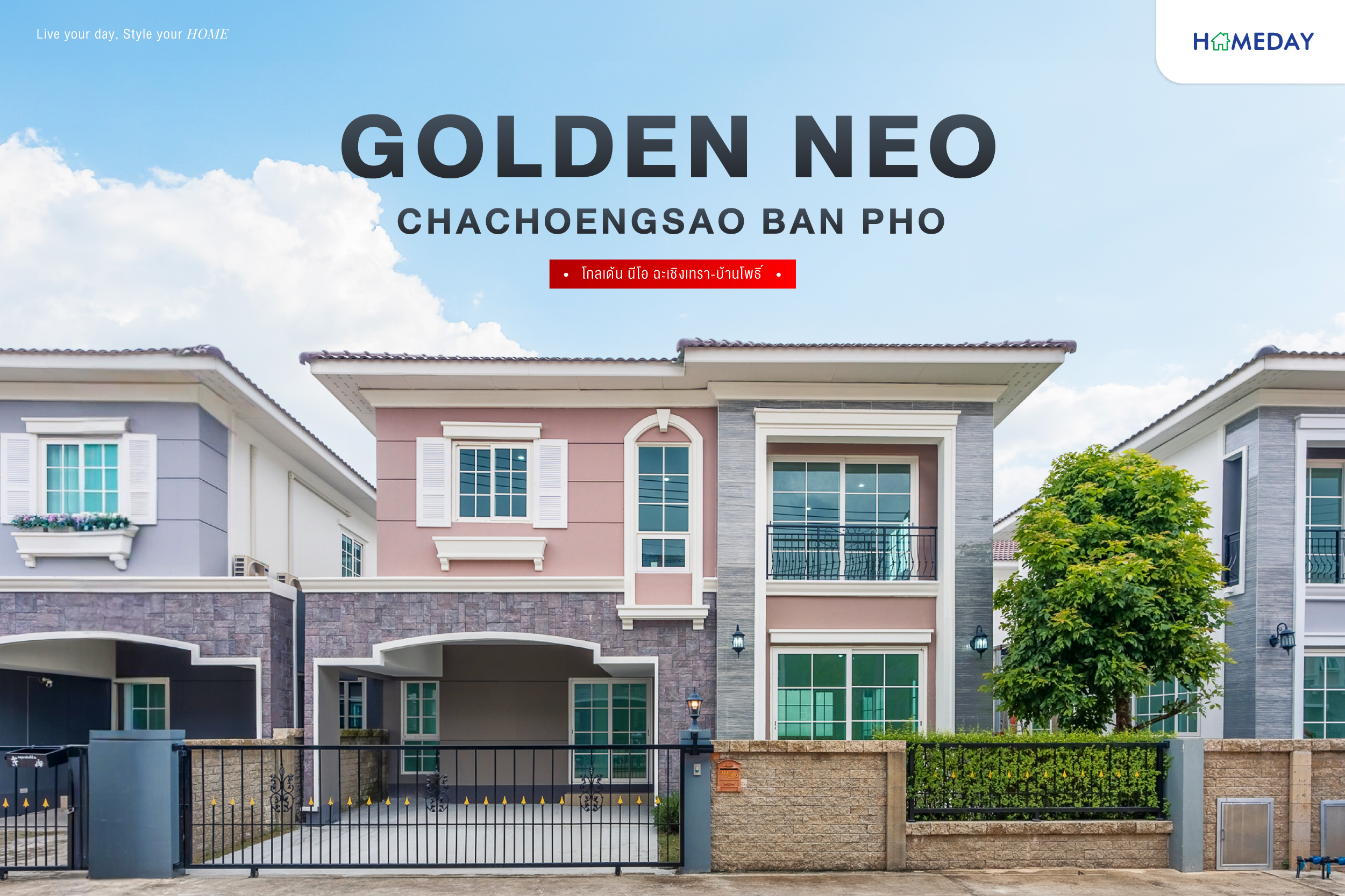 "โครงการ โกลเด้น นีโอ ฉะเชิงเทรา-บ้านโพธิ์ (GOLDEN NEO CHACHOENGSAO BAN PHO) ทาวน์โฮม-บ้านแฝด-บ้านเดี่ยว ฟังก์ชันครบ พร้อมอยู่ สไตล์อังกฤษ พร้อมอลังการกับสโมสร รองรับทุกกิจกรรมในครอบครัว บนสุดยอดทำเลเมืองแปดริ้ว ย่านนิคม ติดถนนใหญ่ ใกล้มอเตอร์เวย์ฯ และโรบินสัน ฉะเชิงเทรา เพียง 10 นาที* ตอบโจทย์ไลฟ์สไตล์ของคนเมืองที่ต้องการความสะดวกสบายและความเป็นส่วนตัว"