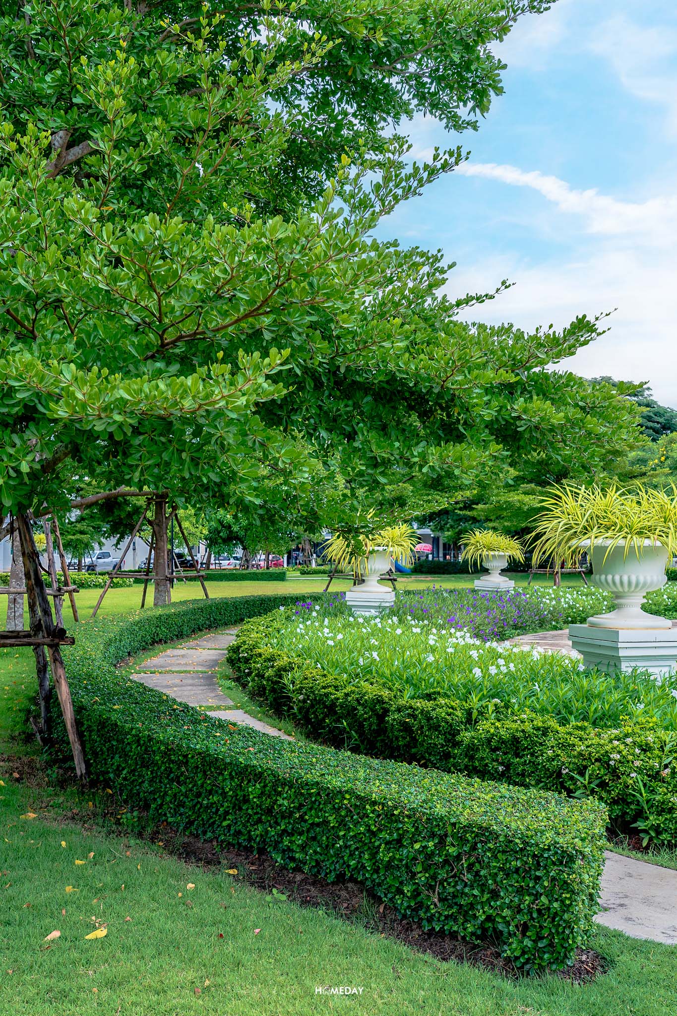 และสนามหญ้าไว้ทำกิจกรรมกลางแจ้งได้หลากหลาย โยคะ แอโรบิก หรือจะเดินเล่นรอบสวน ชมบรรยากาศก็ทำได้เช่นกัน