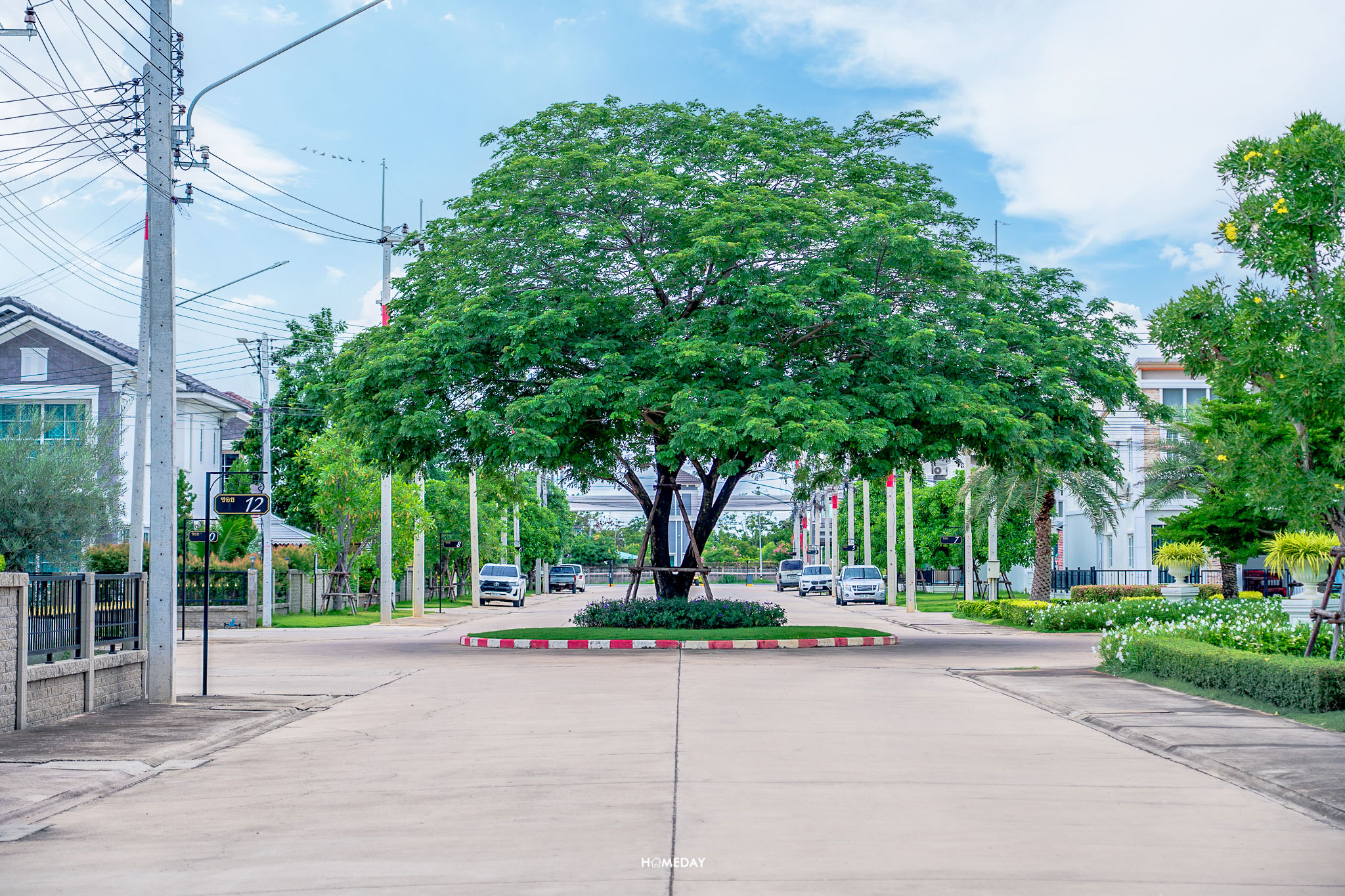 ถนนภายในโครงการกว้างขวาง ร่มรื่นไปด้วยพื้นที่สีเขียวทั่วทั้งโครงการ พร้อมส่งเสริมการใช้ชีวิตที่ผ่อนคลายและใกล้ชิดธรรมชาติ
