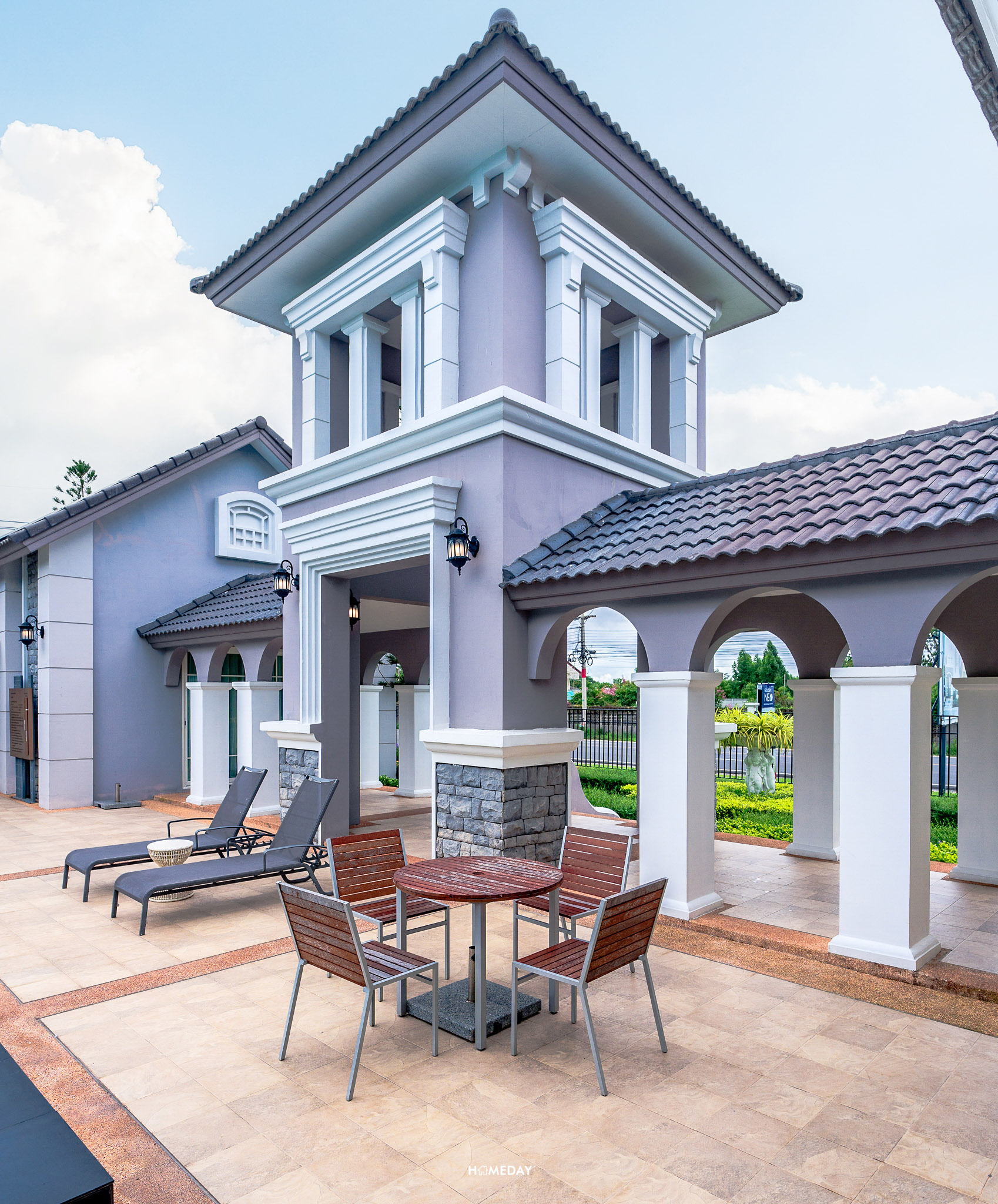 มาดูกันที่ Main Gate โครงการกันครับ ซุ้มโครงการมีขนาดใหญ่ ออกแบบตกแต่งมาในสไตล์อังกฤษ ที่มีความหรูหรา อบอุ่น พร้อมทั้งการจัดสวนหย่อมบริเวณด้านหน้าโครงการทั้งสองฝั่งอย่างสวยงาม
