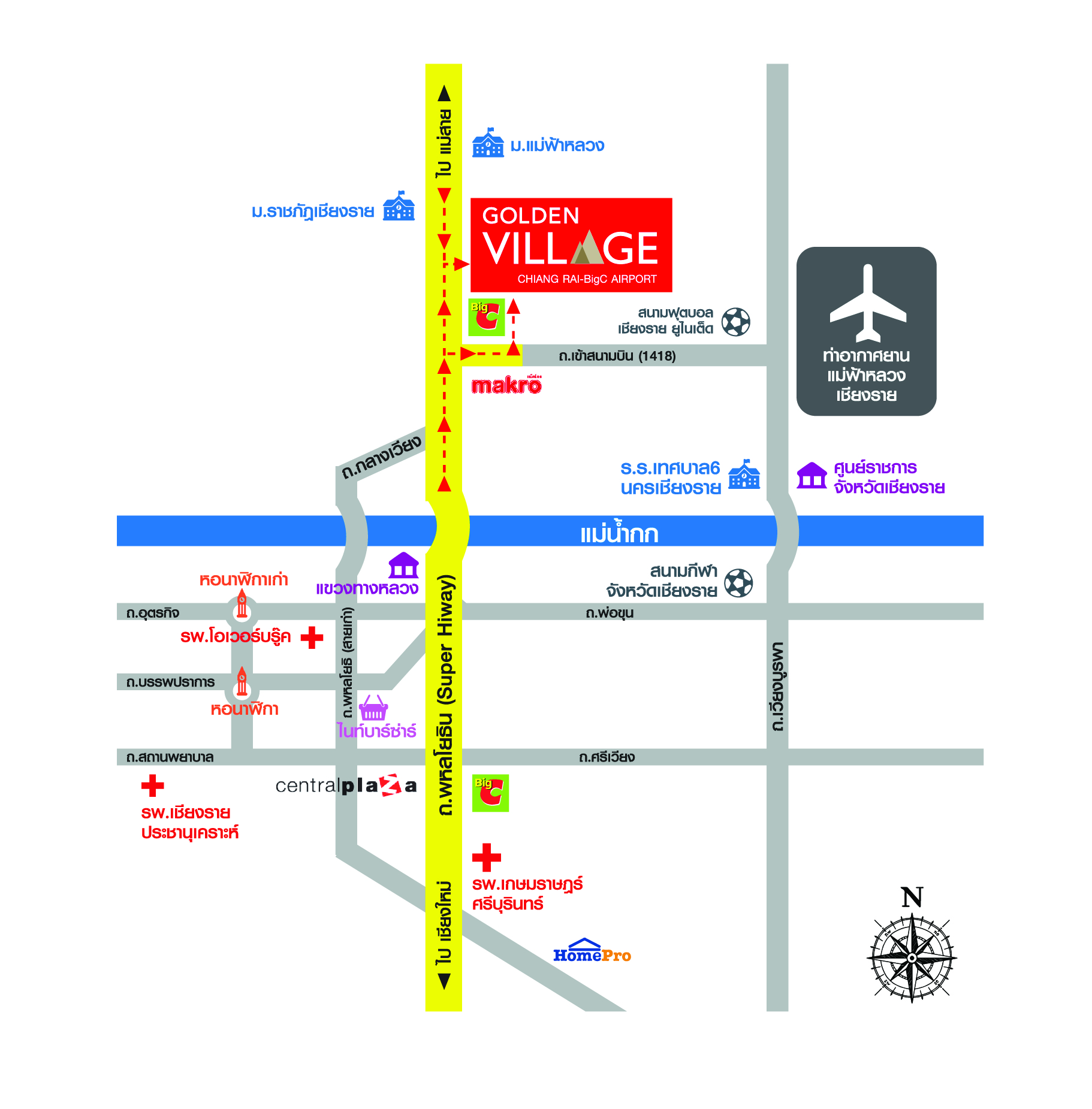 ถนนพหลโยธิน (Super Hiway)ถนนพหลโยธิน (สายเก่า)ถนนเวียงบูรพาท่าอากาศยานแม่ฟ้าหลวงเชียงราย