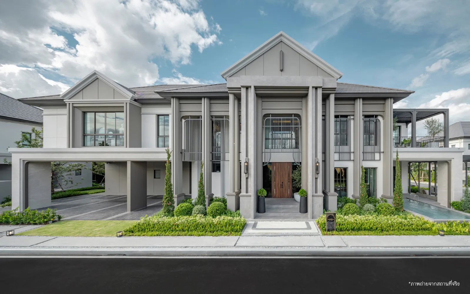 "โครงการ แกรนด์ บางกอก บูเลอวาร์ด ปิ่่นเกล้า-กาญจนา (GRAND BANGKOK BOULEVARD Pinklao-Kanchana) เหมือนทำนองบทกวี ที่ร้อยเล่าเรื่องราวสู่ความยิ่งใหญ่ของสถาปัตยกรรม ที่ได้แรงบันดาลใจจากความรัก สู่ความรู้สึกที่ได้เป็นที่รัก คฤหาสน์หรูสไตล์ Classic Luxury โครงการใหม่ บนที่ดินใหญ่กว่า 120 ตร.วา ที่ได้รับแรงบันดาลใจขาก Mirabell Palace ประเทศออสเตรีย พระราชวังและสวนที่รายล้อมด้วยดอกไม้และเสียงน้ำพุแห่งบทกวี ให้ทุกการอยู่อาศัยรายล้อมด้วยความรักและเรื่องราวการใช้ชีวิตที่อบอุ่น"