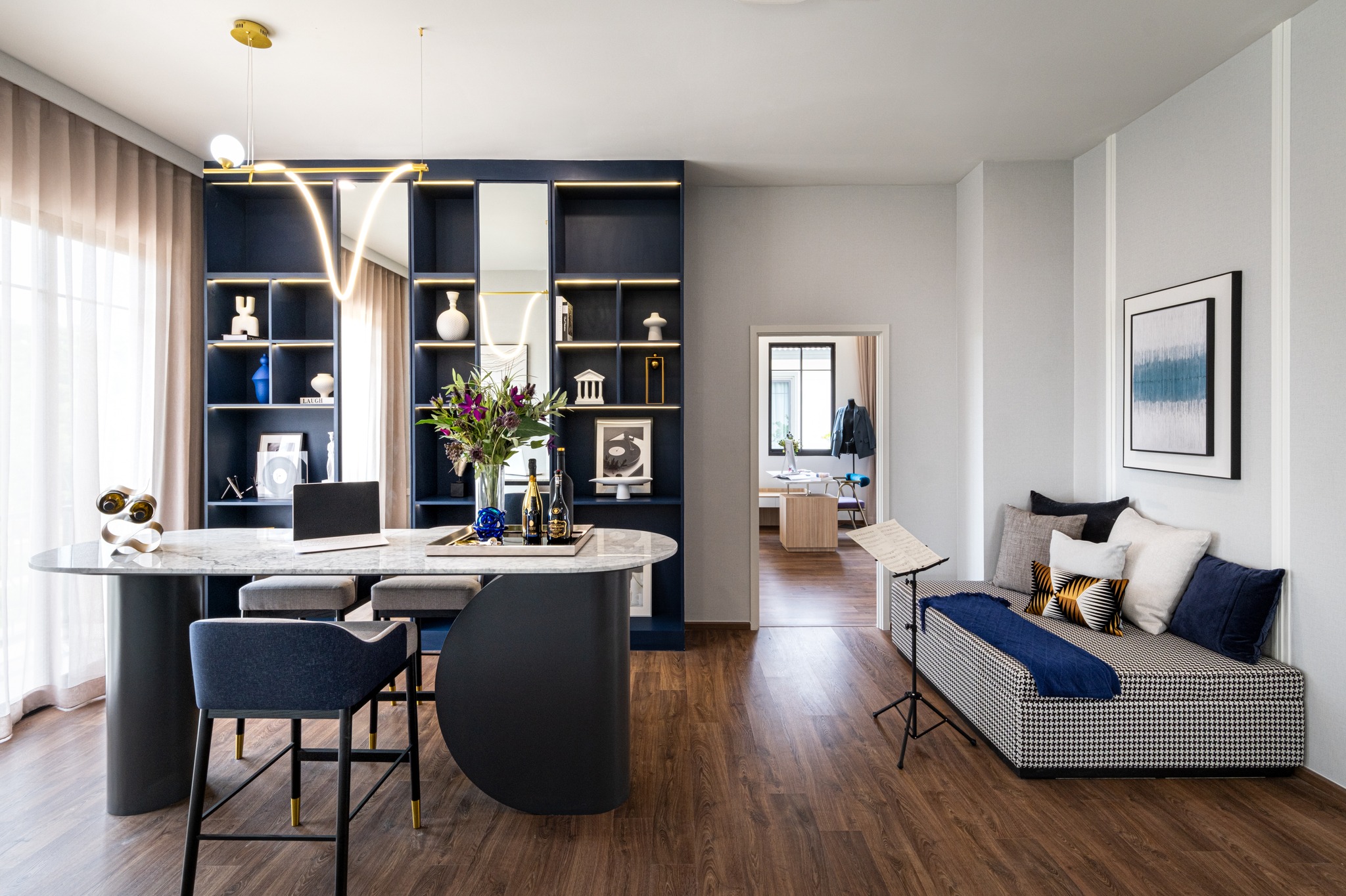 การเดินทาง รถไฟฟ้าสายสีน้ำเงินทางด่วนเฉลิมมหานครทางยกระดับบรมราชชนนีวงแหวนกาญจนาภิเษก แบบบ้าน : CLEO พื้นที่ใช้สอย 143 ตารางเมตร 3 ห้องนอน พร้อมระเบียงชมวิว 2 ห้องน้ำ 1 ห้องรับแขก 1 ห้องรับประทานอาหาร ครัวแยกสัดส่วน เคาน์เตอร์เตรียมอาหาร จอดรถ 1 คัน
