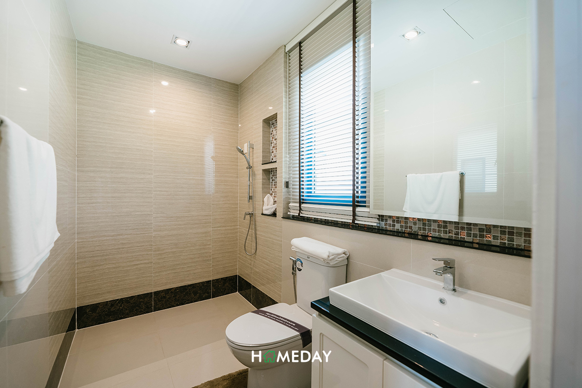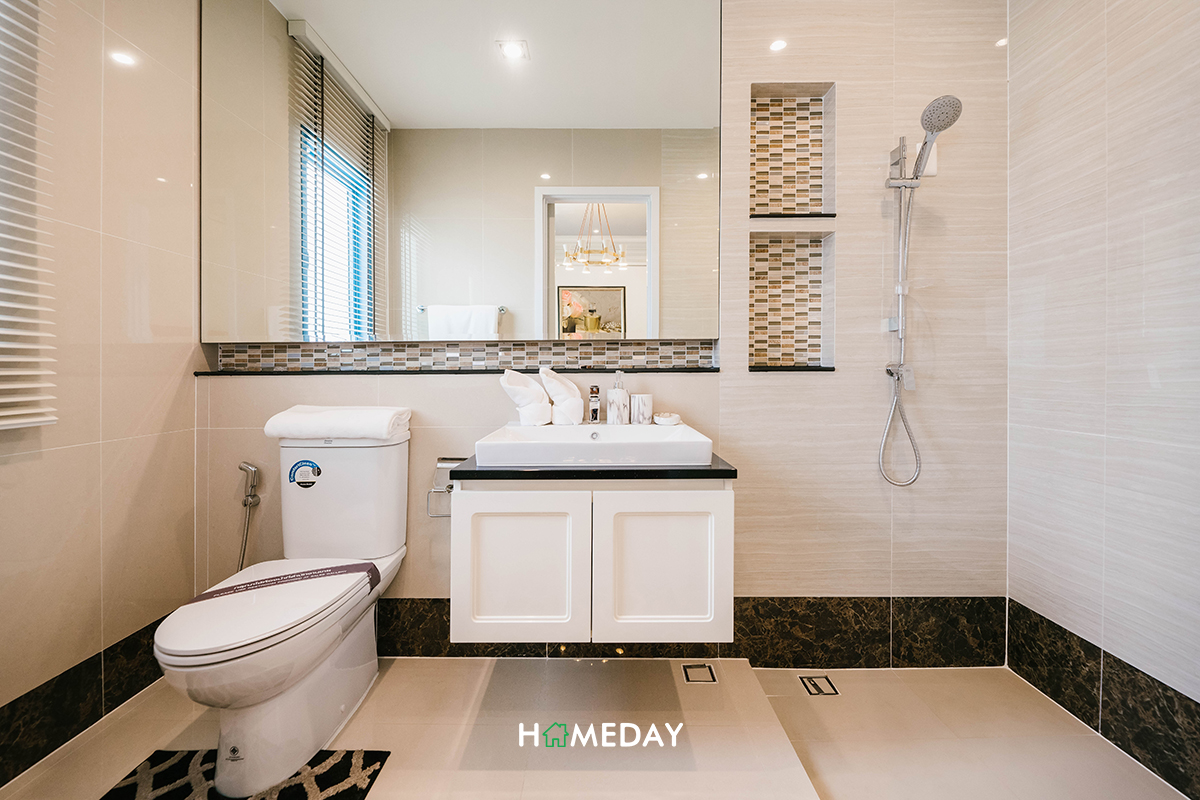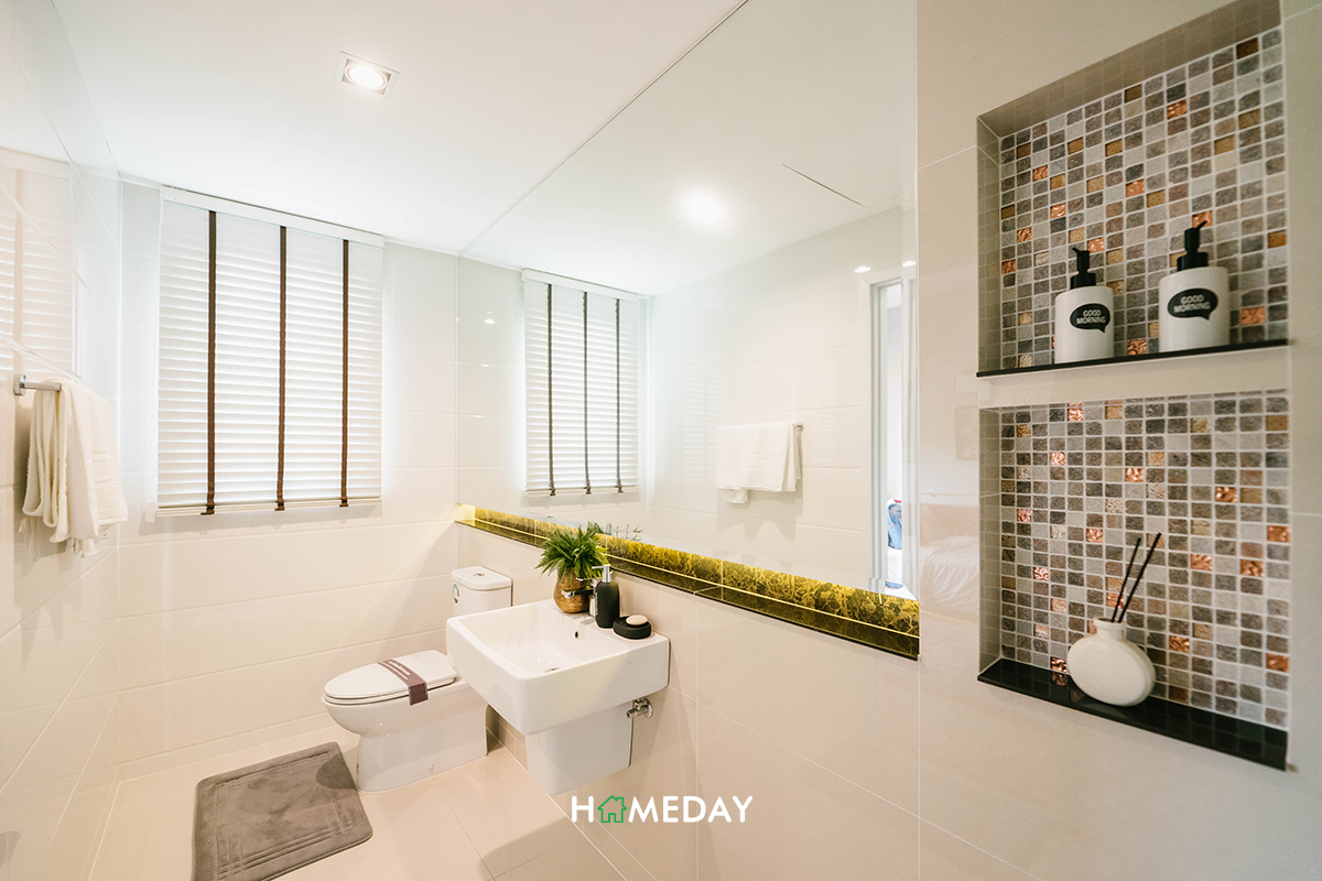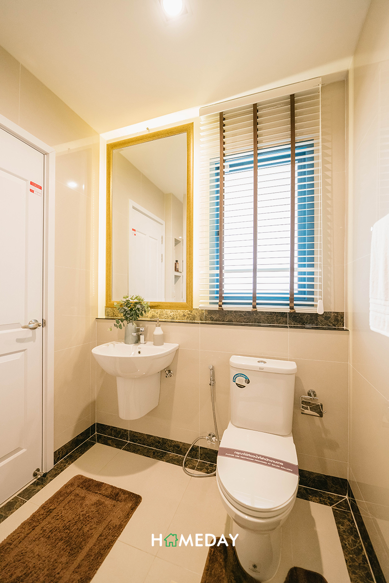 ห้องน้ำของห้อง ภายในฟังก์ชันการใช้งาน และชุดสุขภัณฑ์ทั้งหมด เหมือนกันกับ Bedroom 2 เลยค่ะ มีบานหน้าต่างรับแสงและระบายอากาศมาให้ แนะนำให้ติดตั้ง Partition เพิ่มเติม เพื่อความเป็นระเบียบในการใช้งาน และง่ายต่อการดูแลรักษาความสะอาดนะคะ