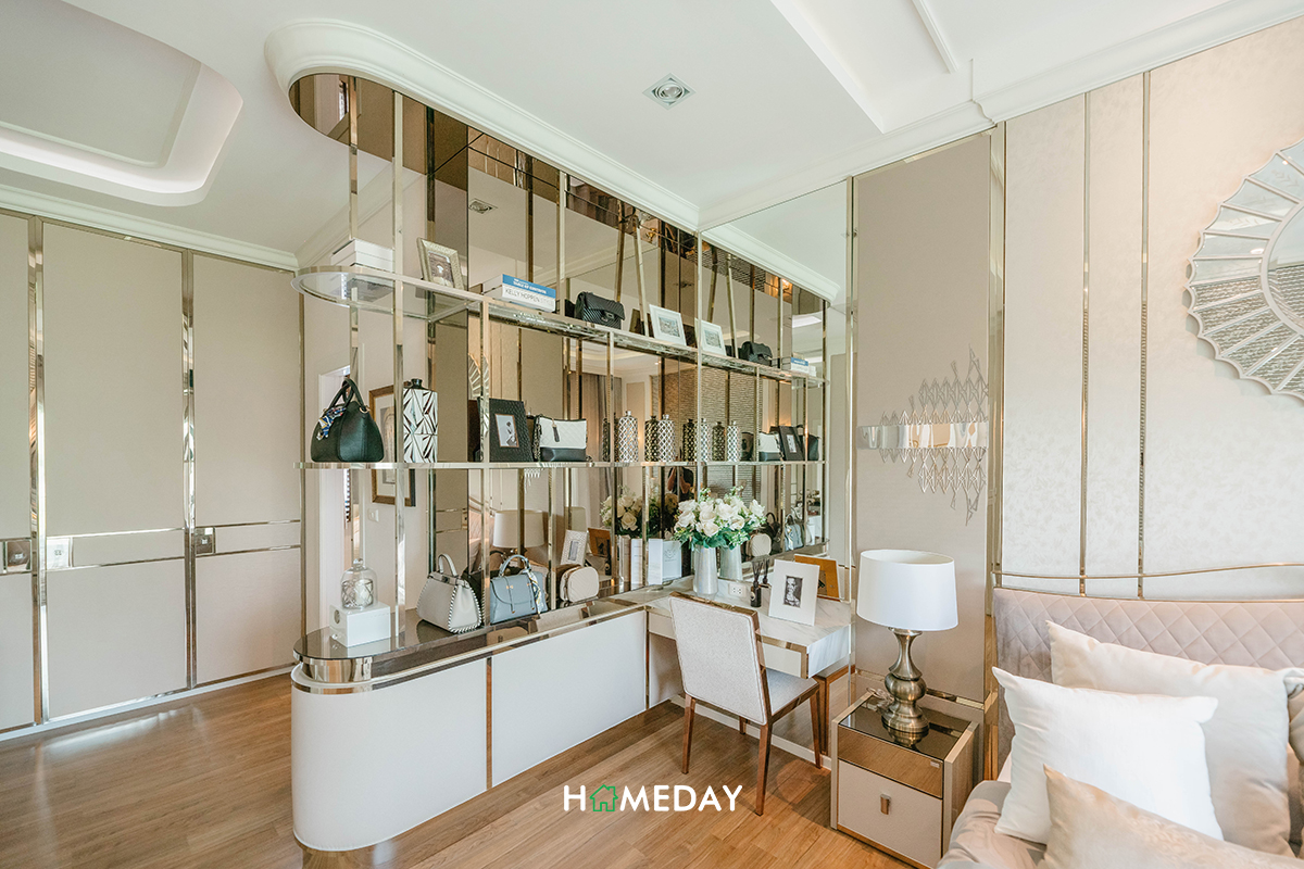 Bedroom 4 ของห้อง ทางโครงการตกแต่งให้ดูเป็นห้องทำงานส่วนตัวค่ะ มีกระจกบานใหญ่ให้ 1 บาน รับแสงได้ดีเลยค่ะ ห้องนี้นอกจากจะปรับเป็นห้องทำงานแล้ว ก็สามารถเลือกปรับเป็นห้องอื่น ๆ ได้ตามความต้องการของผู้อยู่อาศัยเลยค่ะ ถ้าจะปรับเป็นห้องนอน ก็เหมาะที่จะวางเตียงขนาด 3.5 ฟุตค่ะ