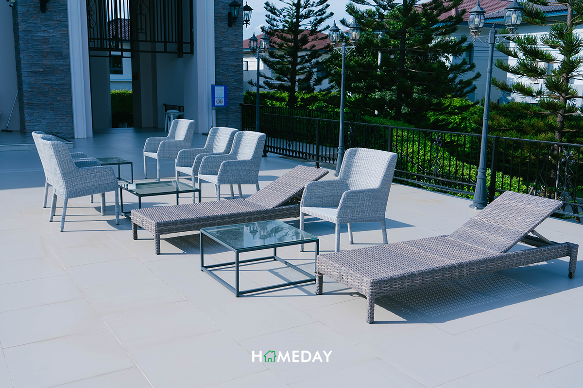 พื้นที่รอบสระค่อนข้างกว้าง มีมุมนั่งพักผ่อนหลากหลาย รองรับไว้ให้ทั้งชุดเก้าอี้พร้อมโต๊ะกลางและเดย์เบด ลูกบ้านสามารถเข้ามาใช้พื้นที่พร้อมกันได้หลายครอบครัวเลยค่ะ
