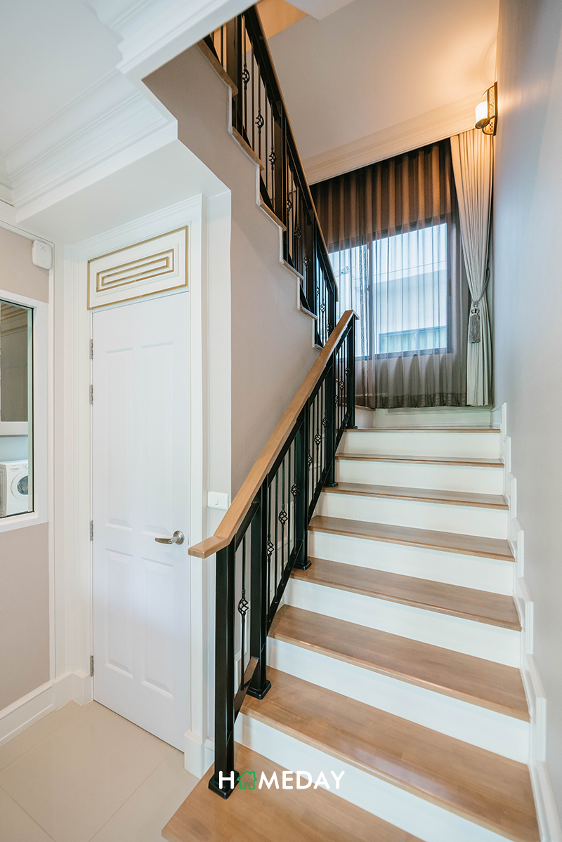 ส่วนพื้นที่ใต้บันใดยังได้ห้องเก็บของมาเหมือนเดิมนะคะ สามารถใช้จัดเก็บอุปกรณ์ทำความสะอาด หรือกระเป๋าเดินทางที่ไม่ค่อยได้ใช้งานบ่อย ๆ ได้เลยค่ะ